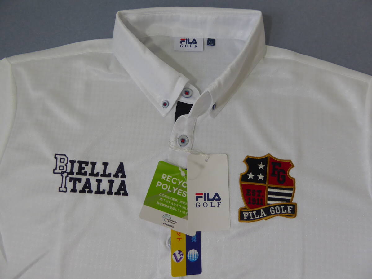 FILA GOLF フィラ ゴルフ 吸汗速乾 UVカット ストレッチ ボタンダウン半袖ポロシャツ LL 白