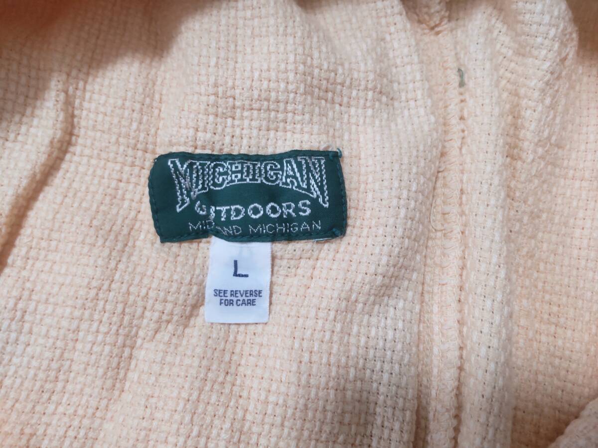 アメリカ、MICHIGAN OUTDOORS(ミシガンアウトドア)社のイージーパンツです ■ミシガン州発のレアなブランドです ■サイズはLになります おおよそとなりますがウエスト80cmから80cm台中間くらいの方に合うと思います ウエスト部にゴムが入っております またドローコードがありますので締める事が出来ます 素人採寸ですが股下75cm 全丈102cmありました ■生地は表示がありませんがコットンになるかと思います サーマル地となっております ■背面右にポケットが付いております ■ユーズドになりますので使用感は多少ありますがまだご使用頂けると思います ■レアなアメリカのカジュアルブランドがお好きな方におすすめです 是非よろしくお願い致します