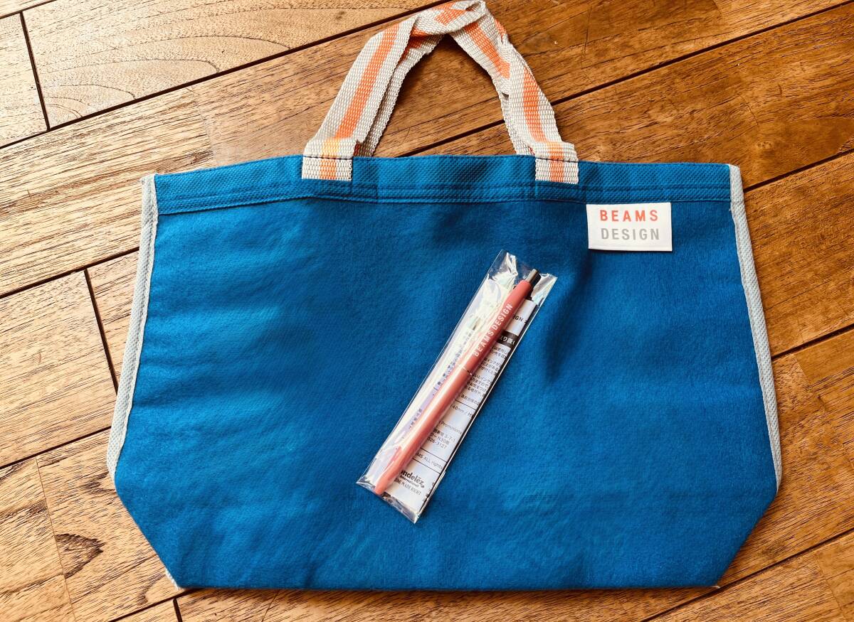 ボールペン(赤系)&リバーシブルトートバッグ(ブルー)