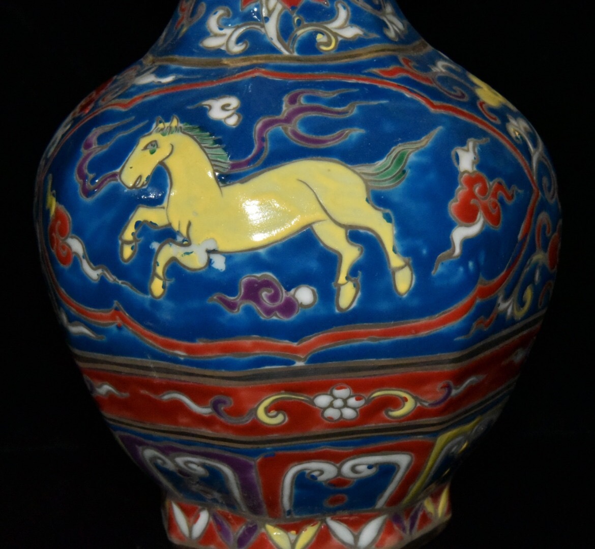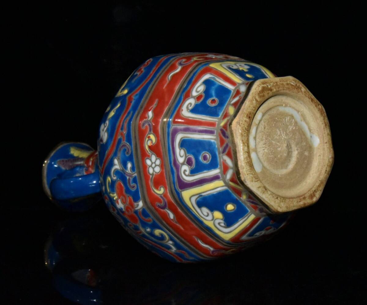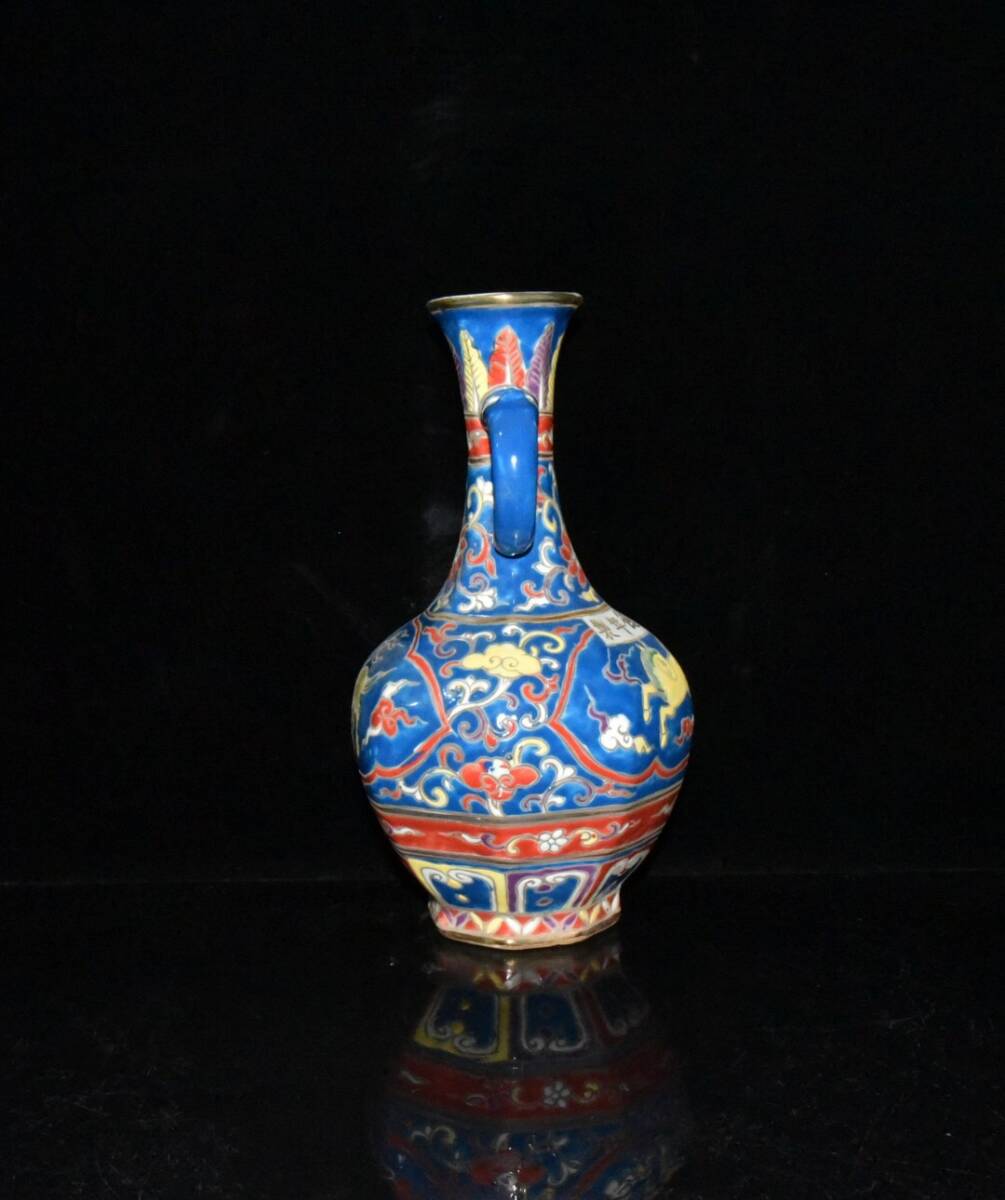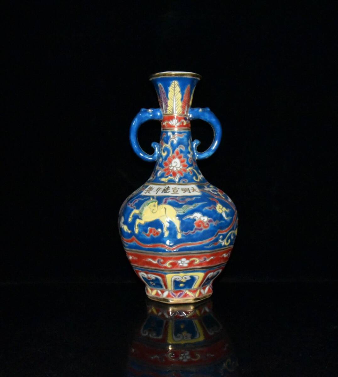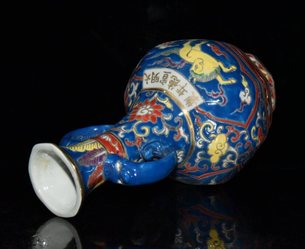 | 【古寶奇蔵】明・宣德年製款・古陶瓷品・五彩・描金・神獣紋・雙耳瓶・置物・賞物・中国時代美術 |