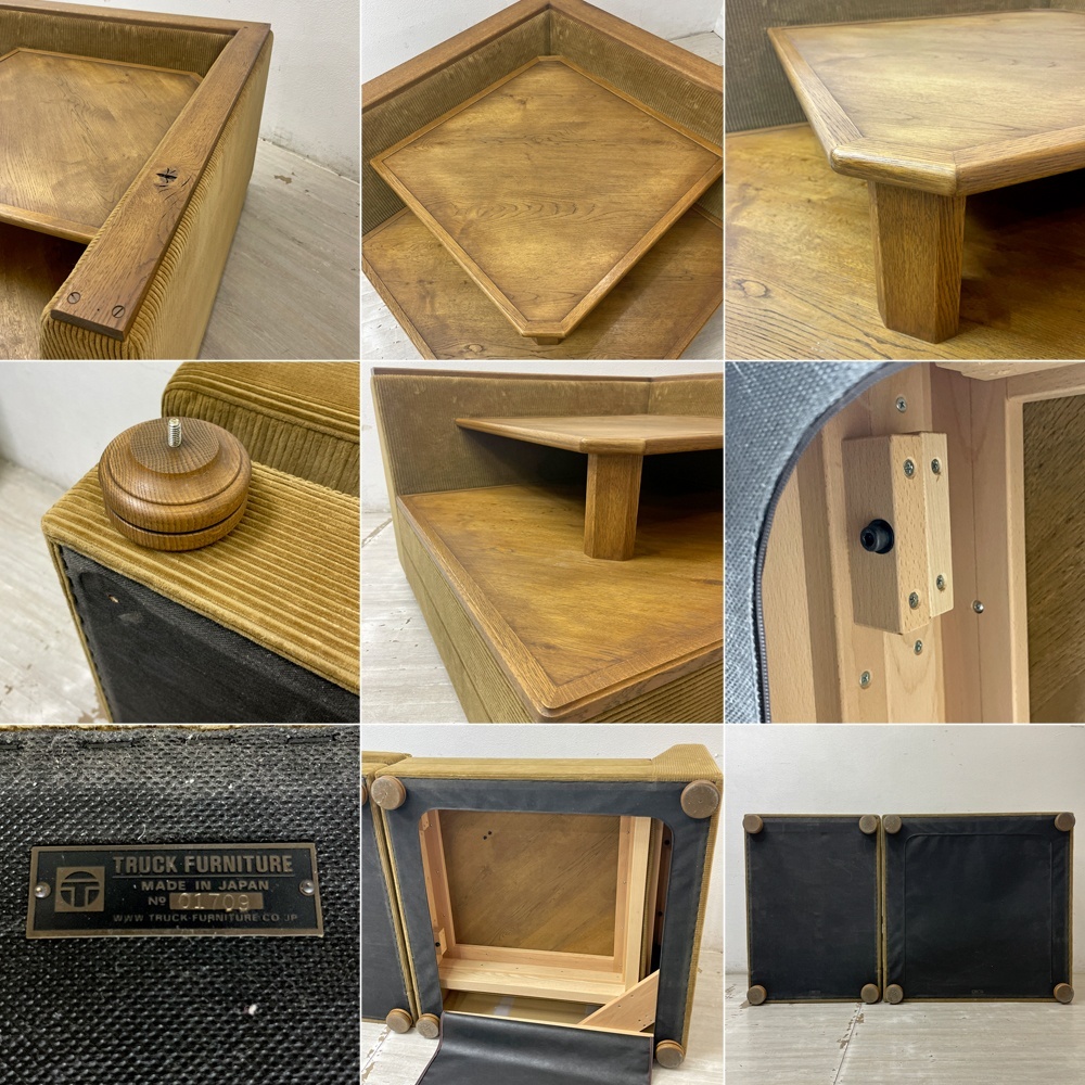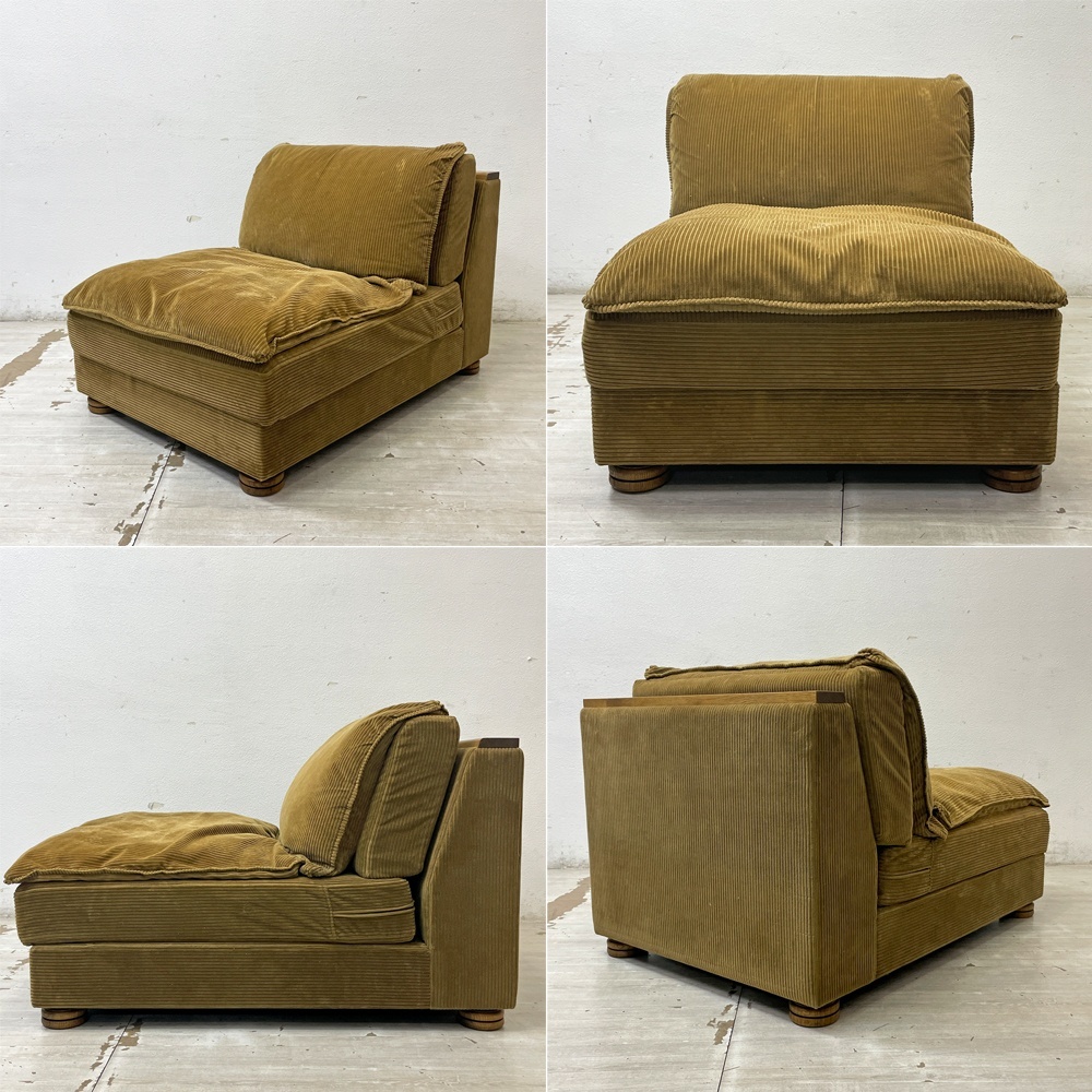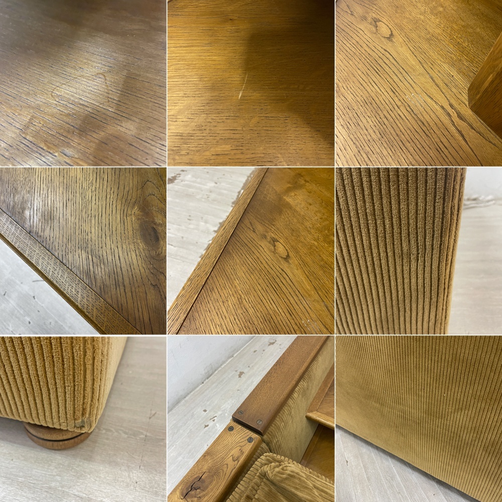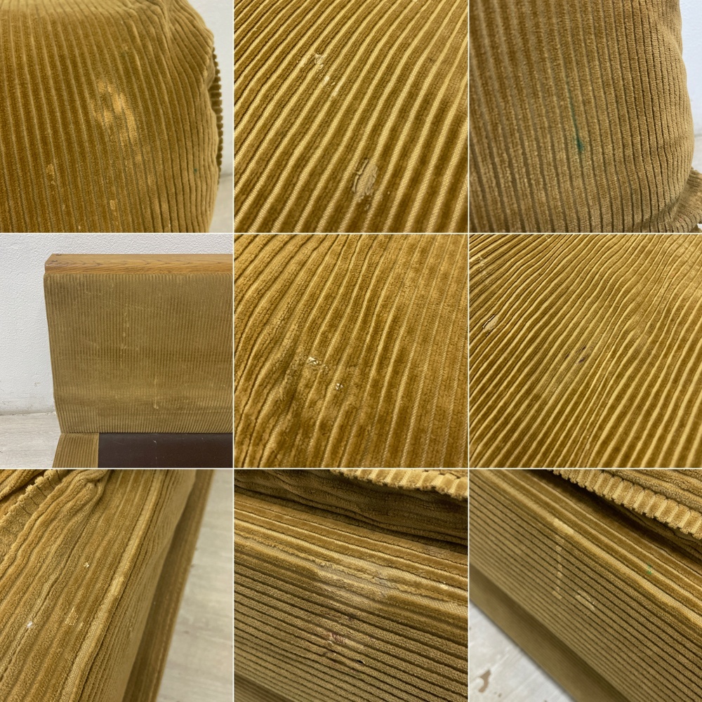 コンディション | 使用に伴い、擦れや小傷、起毛の潰れや圧痕、起毛の剥げ、取りきれない細かな汚れが各所に散見され、焼けによる色合いのムラが見受けられます。 背座クッションカバーリングに染み汚れ、ソファ本体のクッション設置部に染みがございます。 生地の破れやクッションのヘタリなどご使用に支障をきたすダメージはございません。 コーナーテーブルには擦れや小傷が見受けられ、起毛の潰れや圧痕、起毛の剥げ、取りきれない細かな汚れが見受けられますが、こちらは大きく目立ったダメージの無いコンディションを保っております。 USEDとしましては使用感は見受けられるものの、ご使用に支障をきたすダメージも無く、今後も長くお使い頂けるコンディションです。 ※特筆すべきコンディションは出来るだけ記載させて頂きますが、細かい擦れや傷、汚れ等を完全にお伝えする事は出来ません。画像をご確認の上、ご入札をご検討下さいませ。 ※取扱説明書や保証書等は記載が無い限り付属いたしません。 |