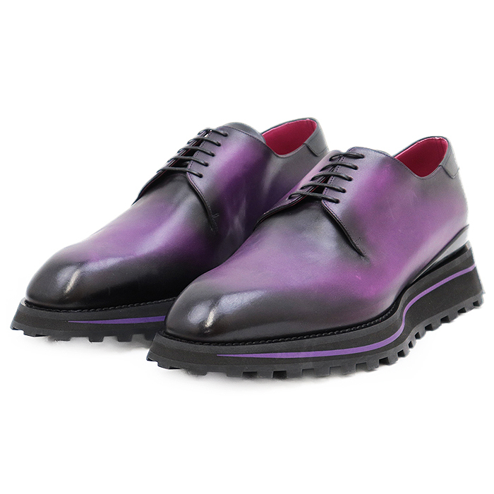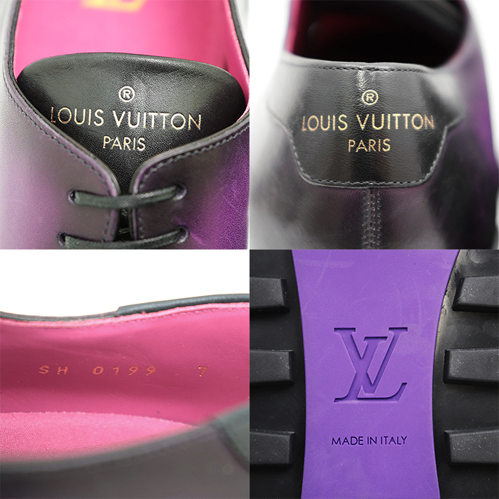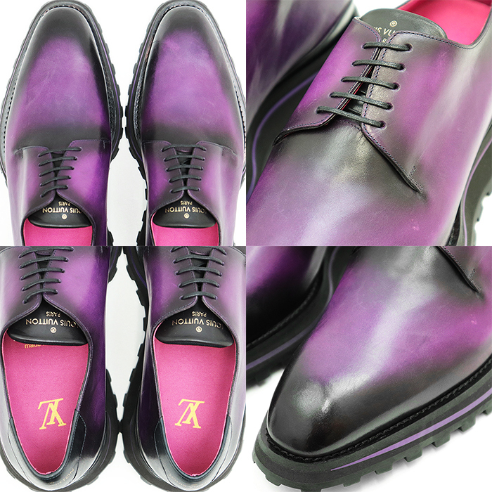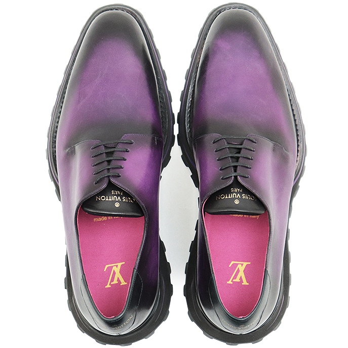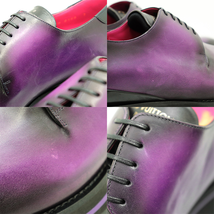 【美品】LOUIS VUITTON ルイ・ヴィトン 2019年製 ゴンクール・ライン パティーヌ プレーントゥ ダービーシューズ 革靴 メンズ 7 紫 黒 伊製