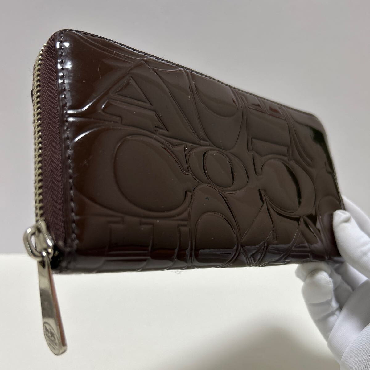 ・COACH コーチのブラウンの長財布は 外装にベタつきがございます。