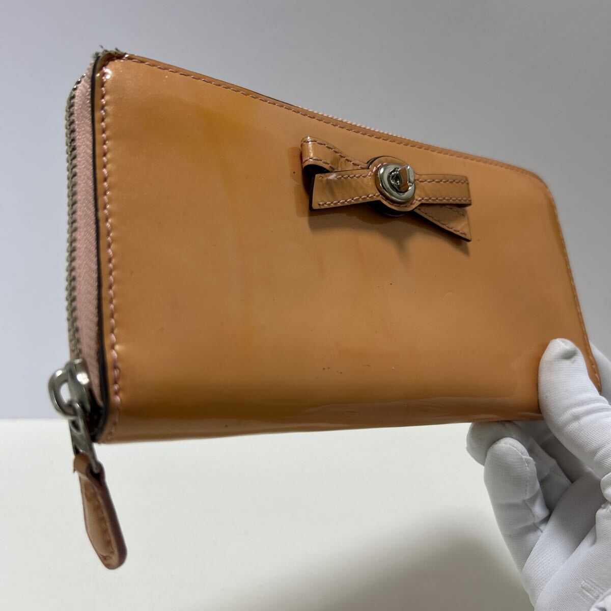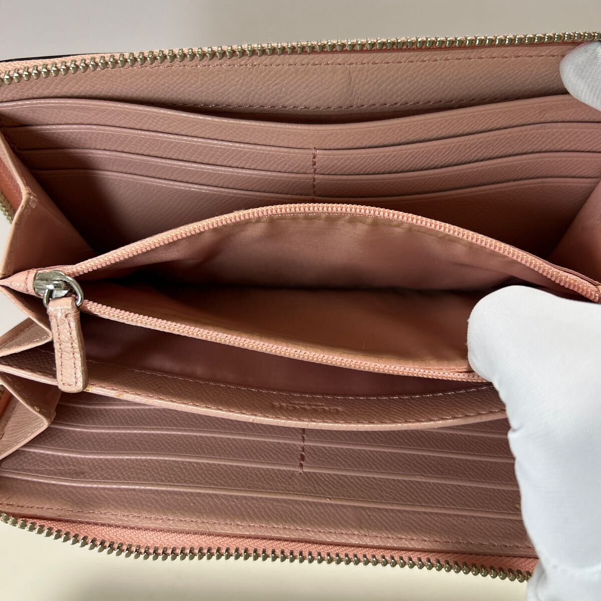 ・COACH コーチの薄オレンジ系の長財布は 外装にややベタつきがあり、内装に幾つか傷みがございます。