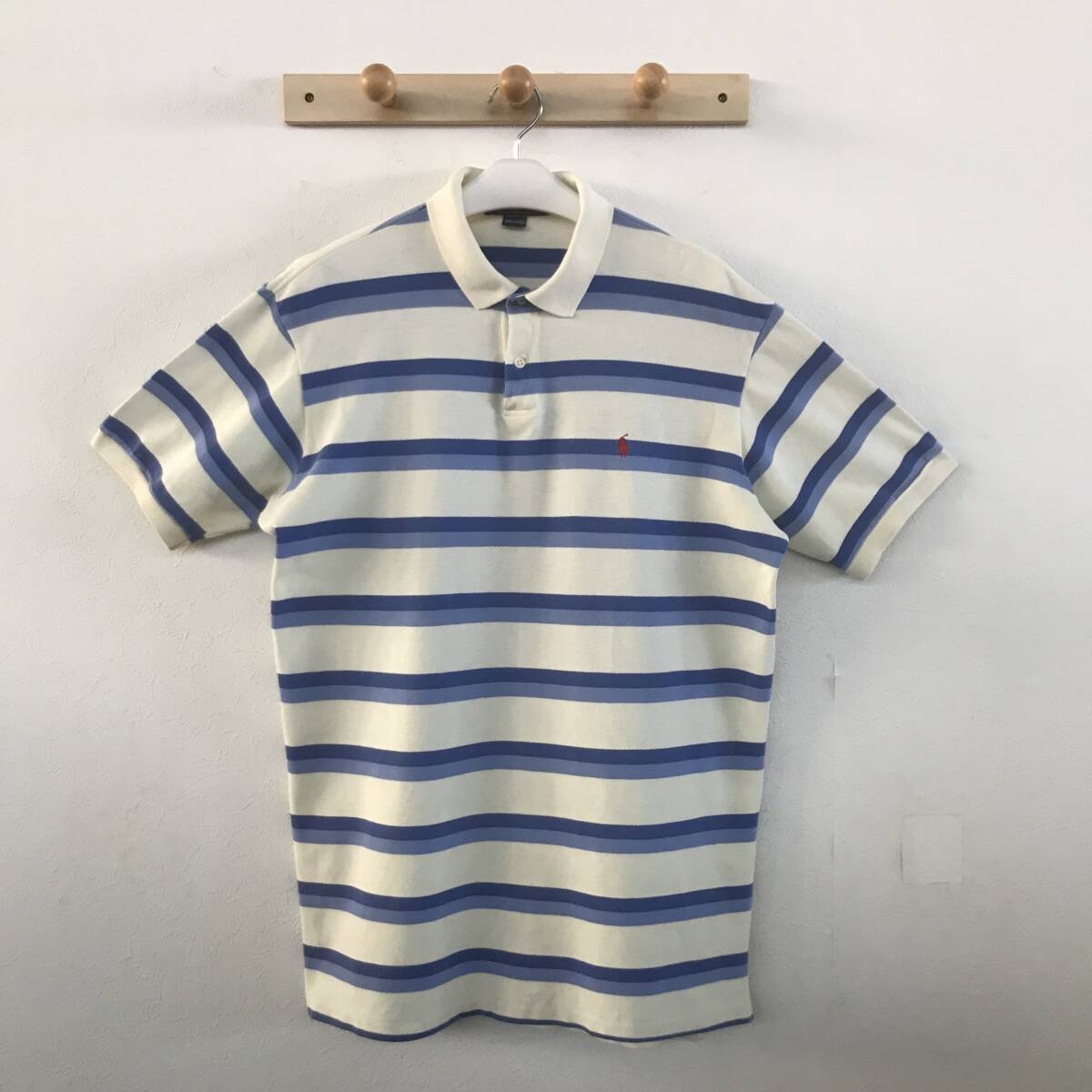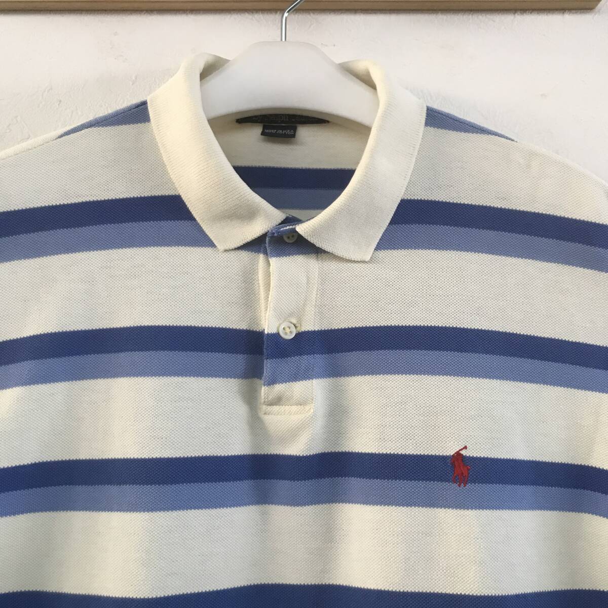 80s USA製 Polo Ralph Lauren ポロ ラルフローレン メンズ オーバーサイズ 半袖ボーダーポロシャツ size L/2XL BEE0209