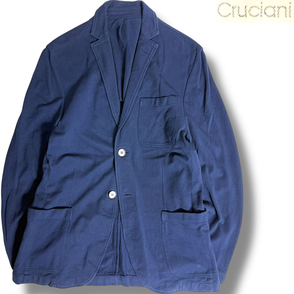 J7268 美品 クルチアーニ 鹿の子ジャージーテーラードジャケット ネイビー 48 CRUCIANI