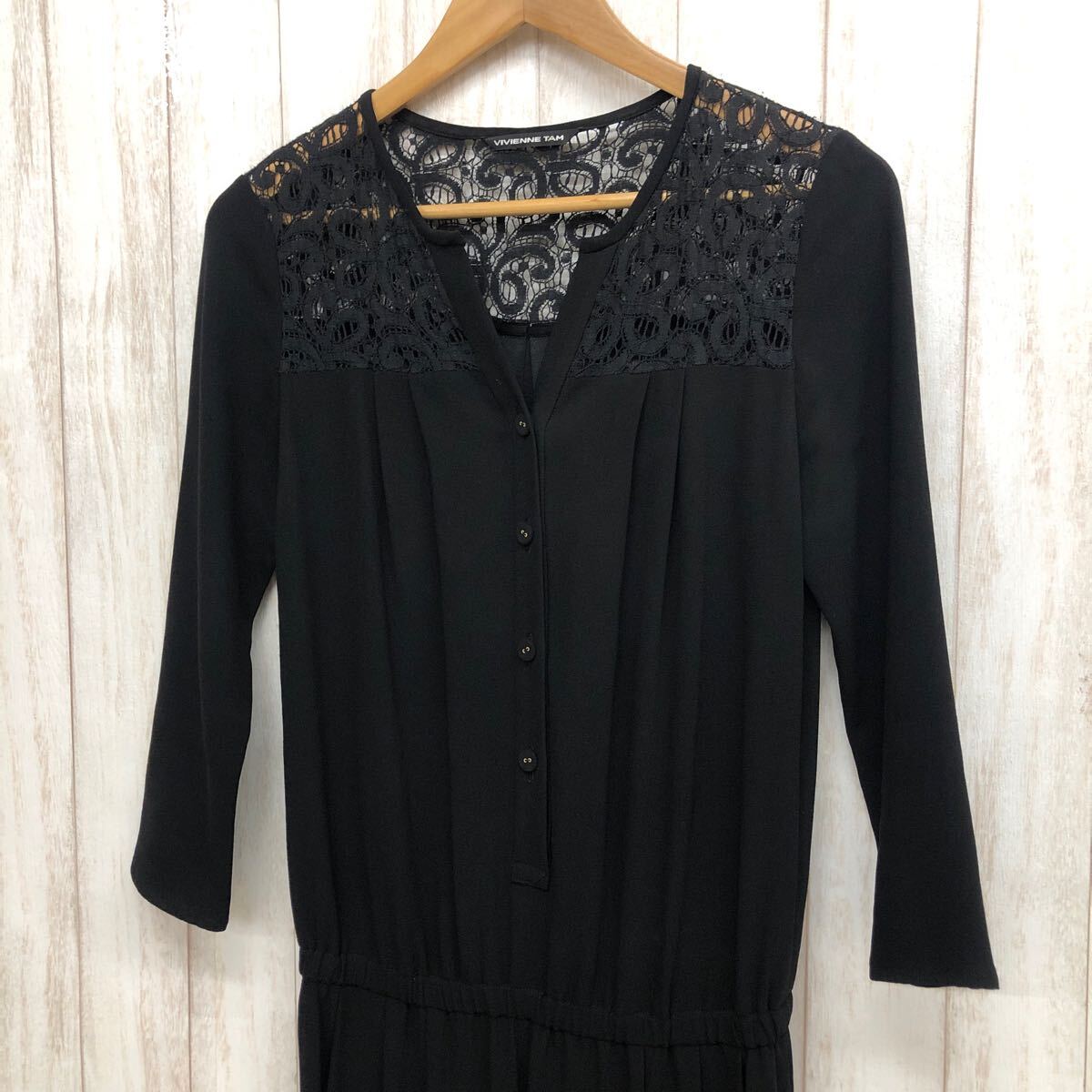 VIVIENNE TAM ヴィヴィアンタム オールインワン サイズ0 ワンピース パンツ 7分袖 スキッパー レース 016-140336 黒 レディース YF237
