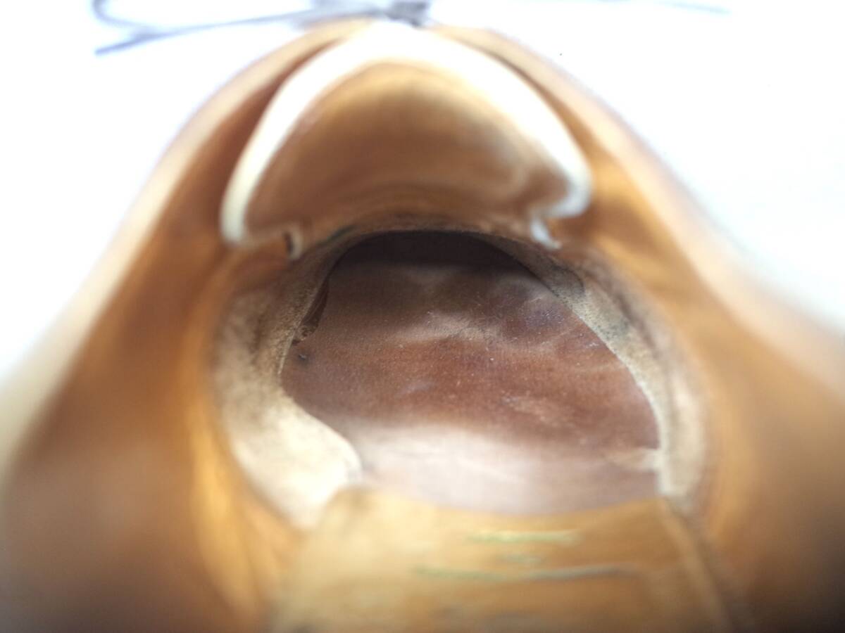 ユーズドのため、経年保管ならびに使用に伴うスレやキズ、シワ、スリキズ、スレ痕、アタリ痕、軽いヘコミ、などございますが、その他の状態は大きなダメージもなく全体的に良好だと思います。(シューレース/靴ひもは欠損していたため、新品のロウビキタイプのものに交換しています。)