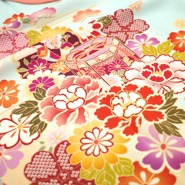 そこに、牡丹・桜・菊・貝桶・雪輪 など四季の花や古典柄が染められています。