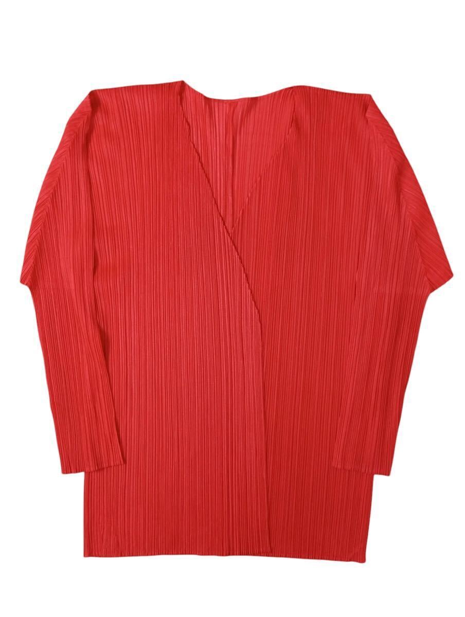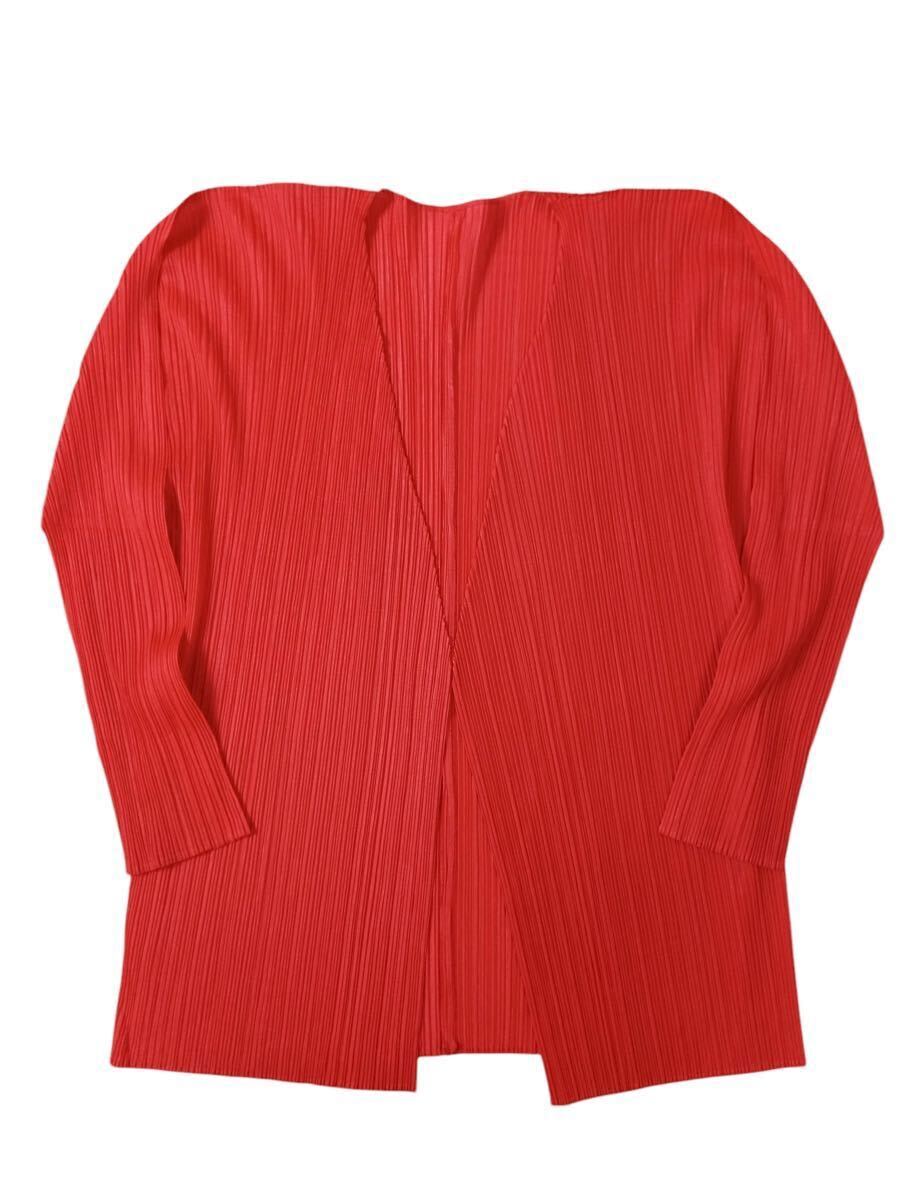 (D) ISSEY MIYAKE イッセイミヤケ プリーツ カーディガン レッド 長袖 (ma)
