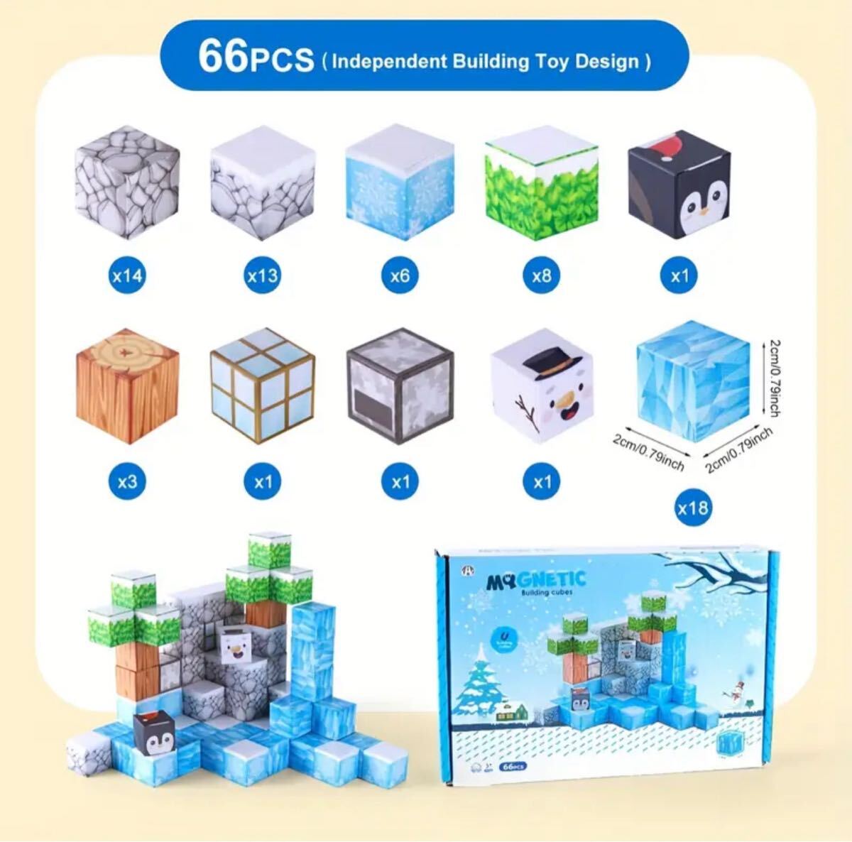 66ピースマイクラ互換性のマグネットブロックです。