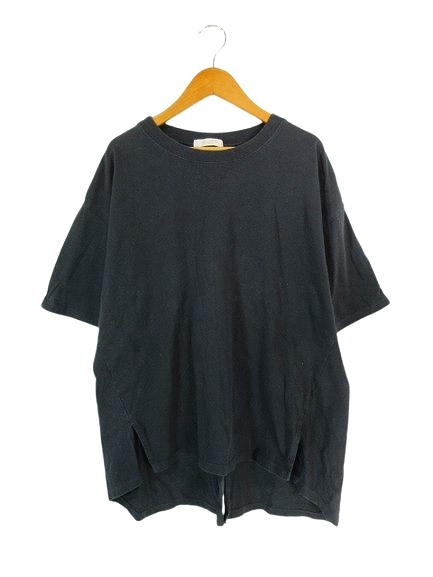 ショコラフィネローブ chocol raffine robe Tシャツ クルーネック 半袖 無地 バック サイド スリット サイズF 黒 QQQ レディース