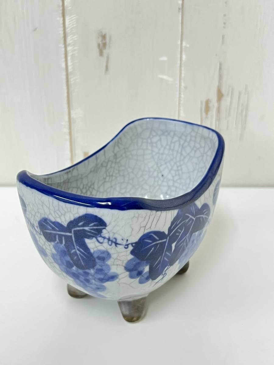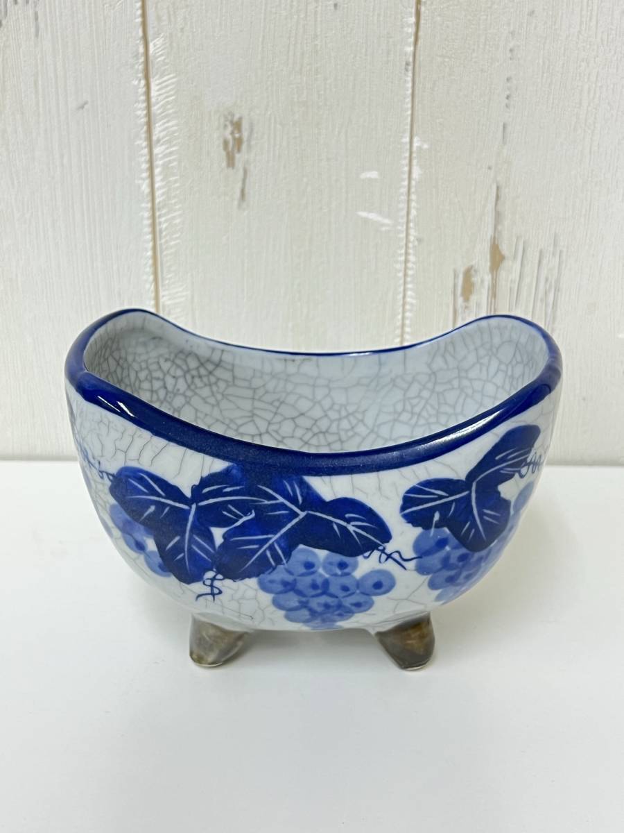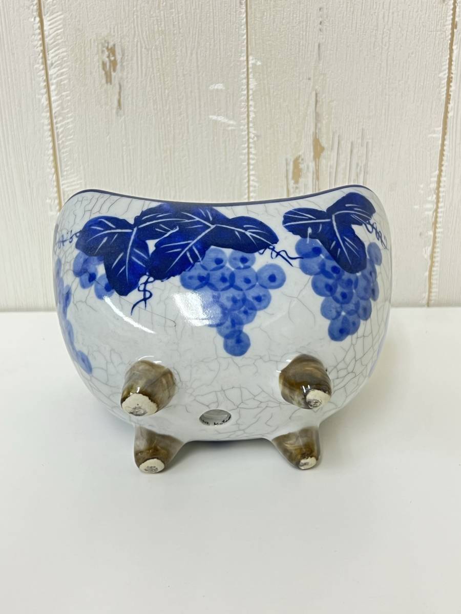 陶器 【三日月型植木鉢 ぶどう】 葡萄 ブドウ かんにゅう 寛入 ガーデニング 染付 盆栽 植物 多肉 庭園 お庭 大人気