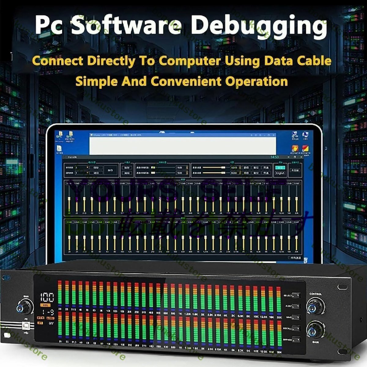 プロフェッショナル 31 バンド EQ イコライザー、2 チャンネル グラフィック イコライザー、10 プリセット モード、自動ノイズ低減、LED ライト ディスプレイ オーディオ イコライザー、レコーディング スタジオ用