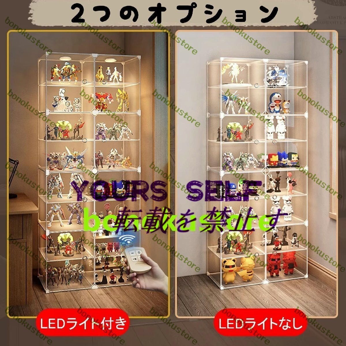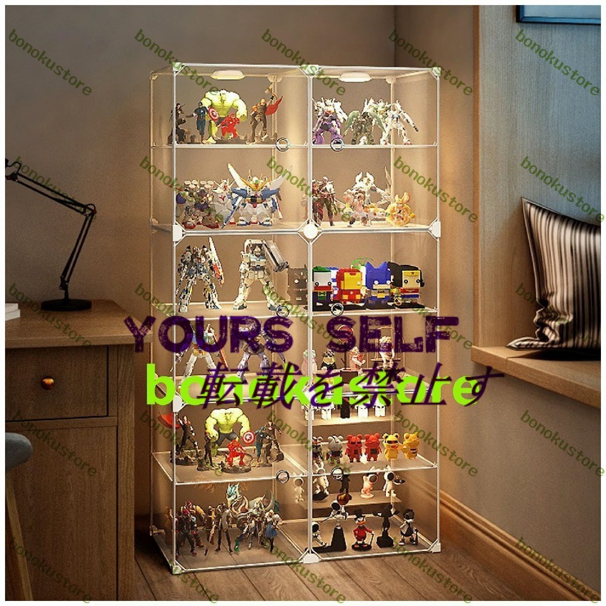 フィギュアラック 大容量 HD透明 フィギュアケース ディスプレイラック ションケース ディスプレイケース コレクションボックス ショーケース 収納棚 整理棚 収納ボックス 耐久性 省スペース 多用途 透明 組み立て式 2列6層-LED