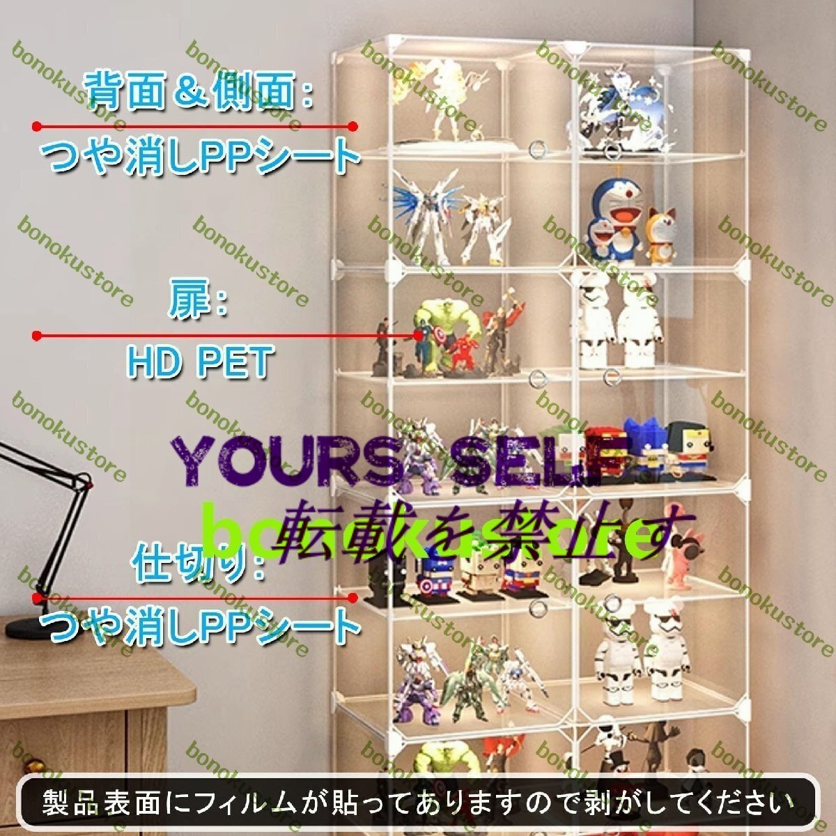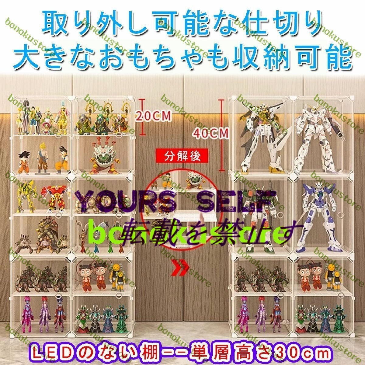 CESTRY---フィギュアケース 透明 大型 ディスプレイラック 収納棚 整理棚 多用途 組み立て式大容量、組み立て自由自在な魔法の収納ボックス!高品質の透明でいつでも大切なフィギュを見ることができます。大切なコレクションを埃から守り、いつも綺麗な状態で展示できます。この収納ボックスは、フィギュア以外にも、ジュエリーや小物や鞄などを収納することができます。多目的に使用できるので、おしゃれなインテリアとしても活躍します。【製品仕様】 - -(材料:)背面・側面:フロストPPシートパーティション:つや消しPPシートドアパネル:HD PET - - (サイズ:)LEDライトなしのディスプレイスタンド、単層高さ30cmLEDライト付きディスプレイスタンド、単層高さ20cm奥行き30cm【ご注意ください! ご注意ください! ご注意ください! 】1.製品の表面には保護フィルムが付いていますので、ご使用前に剥がしてください。2.商品の色はモニター、カメラ、撮影環境により多少の影響がありますので、実際の商品をご参照ください。3.製品の寸法は手作業で測定されており、若干の誤差はご了承ください。4.ご不明な点がございましたら、電子メールでお問い合わせください。