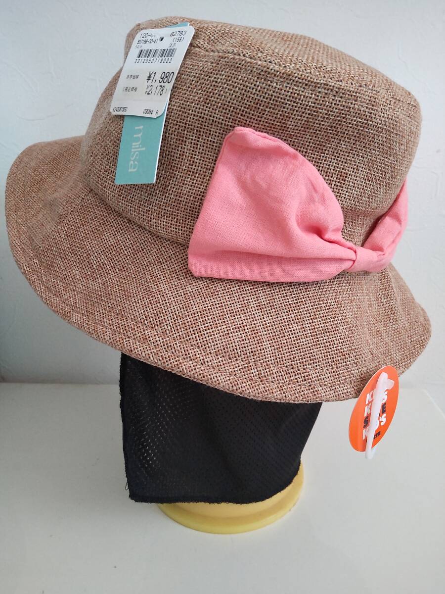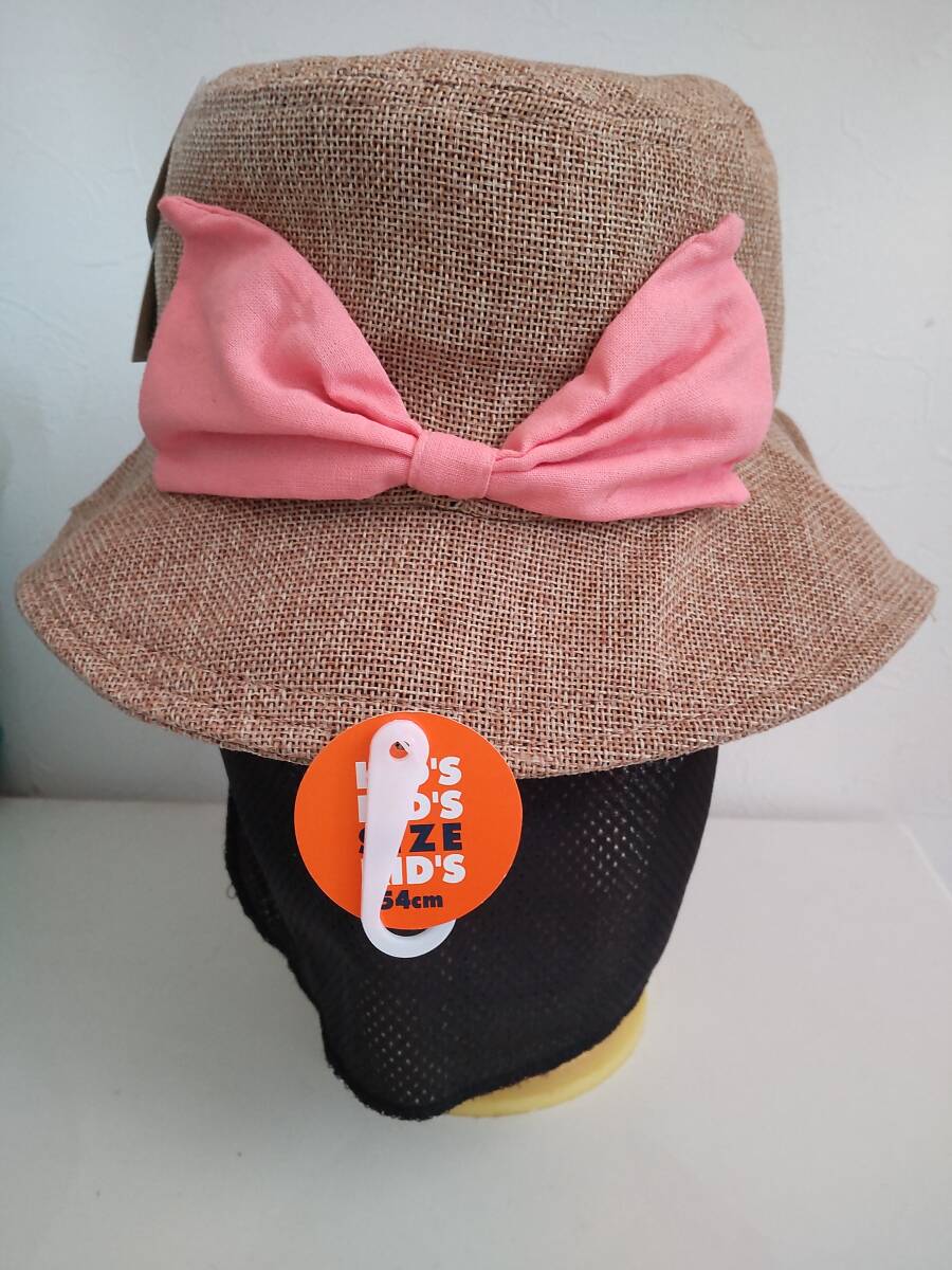 新品未使用 即決■54cm リボン付き帽子 女の子 ネックガード付き/送料込み