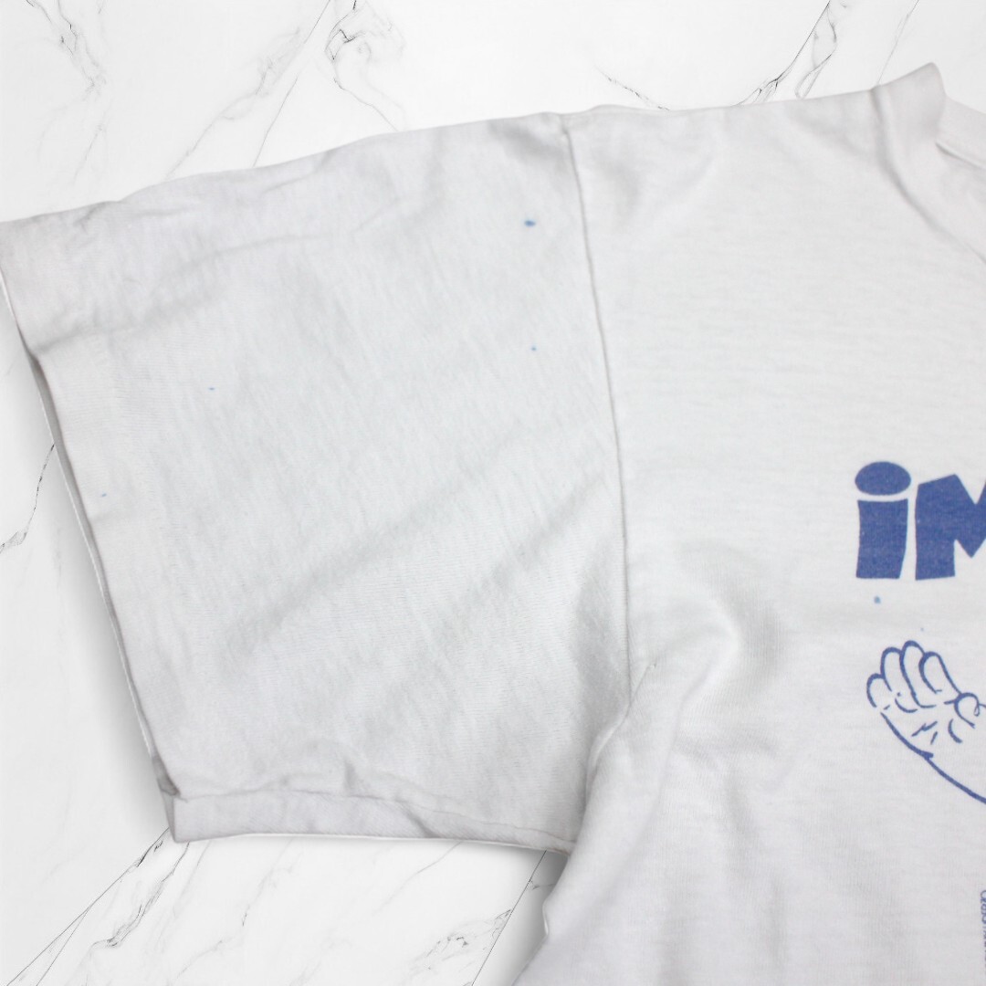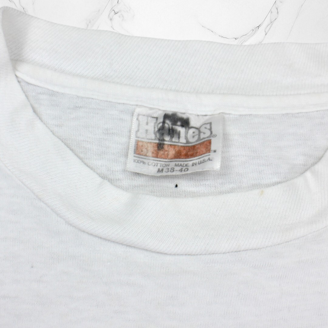 80年代USA製で、シングルステッチのディテールが光るヴィンテージTシャツ。柔らかなコットン生地に片面プリントが施され、リアルな使用感が味わい深い一枚です。