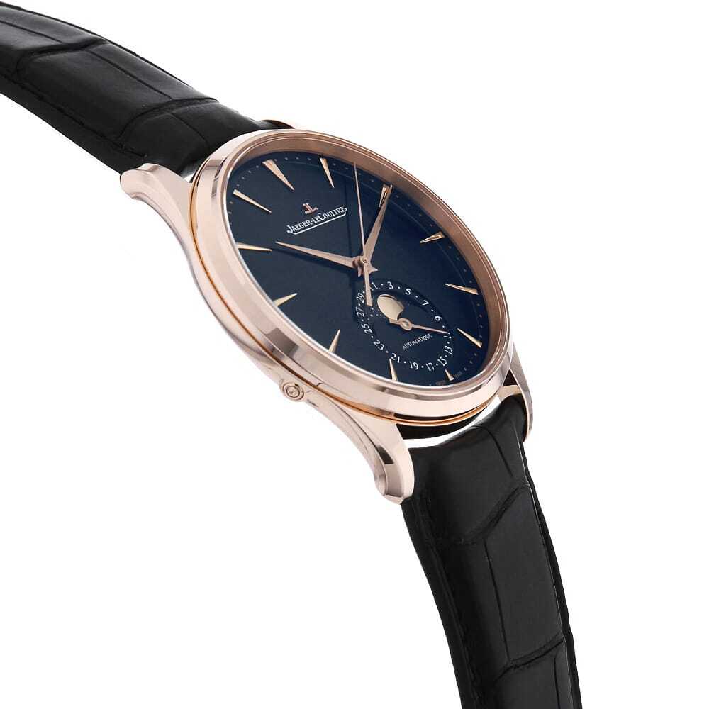 | モデル情報 | 新作マスター・ウルトラスリム・ムーンは、スモーキートーンが控えめにかかった深みのあるディープブルーで彩られた、サンレイ仕上げダイアルとなっています。細部にまで緻密な仕上げが施された複雑なデザインで魅惑する、このミッドナイトブルーのグラデーションがアリゲーターストラップのディープブルー色と相まり、心地よい統一感を生み出しています。パワーリザーブ70時間。 |