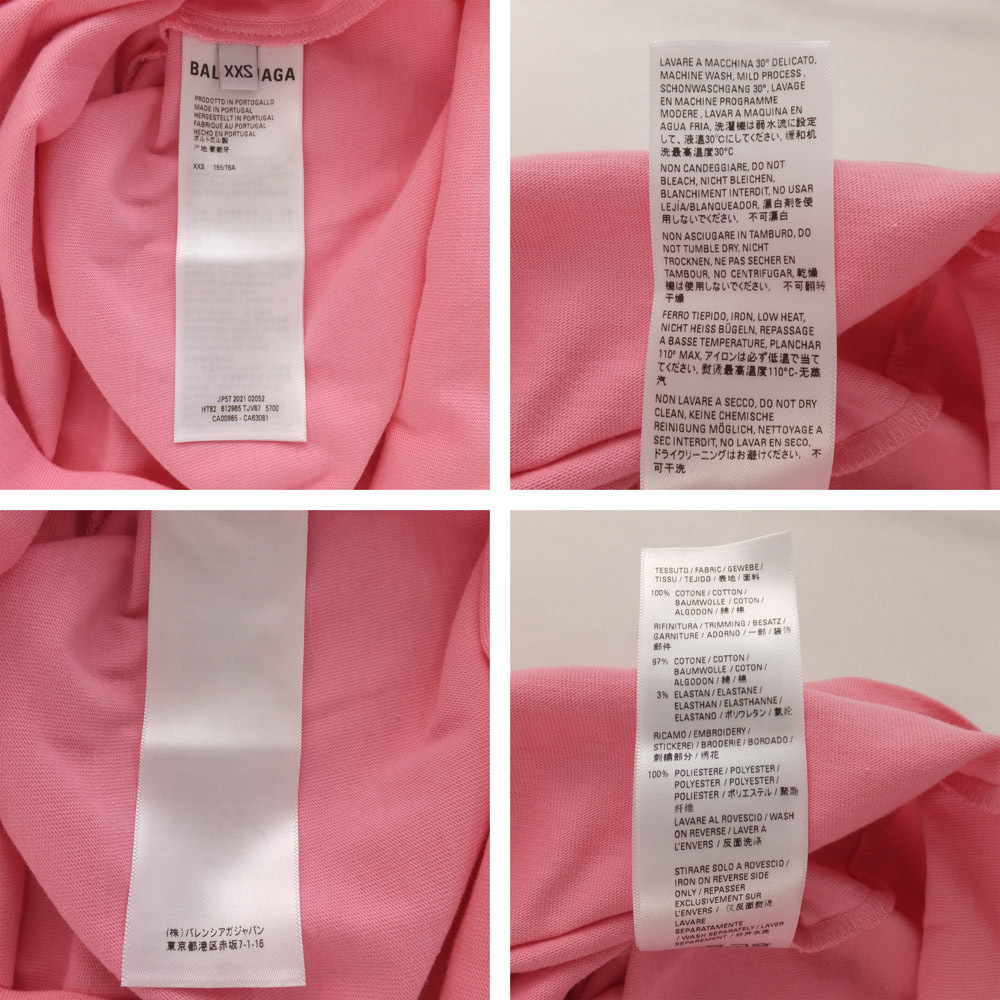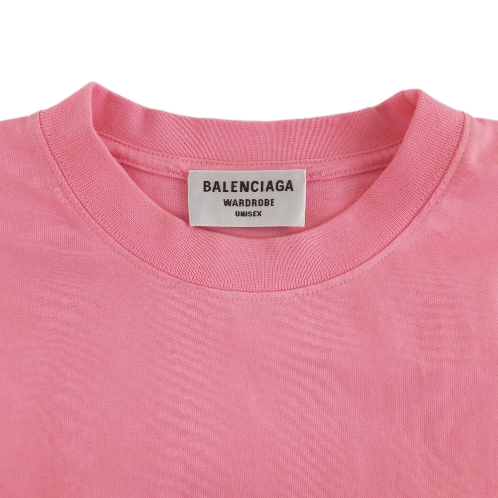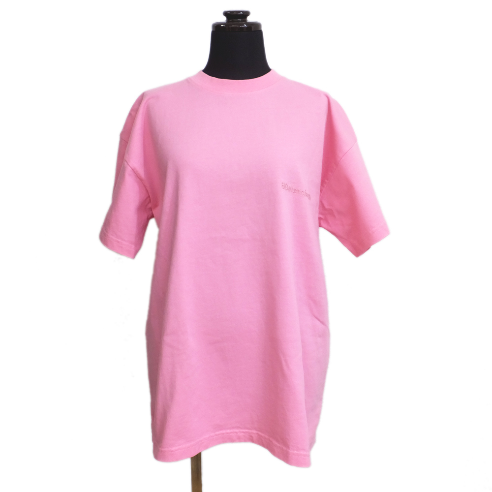 【天白】バレンシアガ Tシャツ ピンク 半袖クルーネック 表記サイズXXS 刺繍ロゴTシャツ トップス ファッション 服