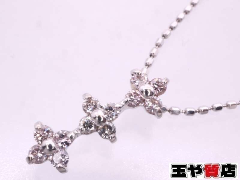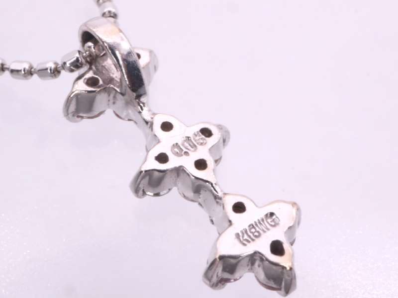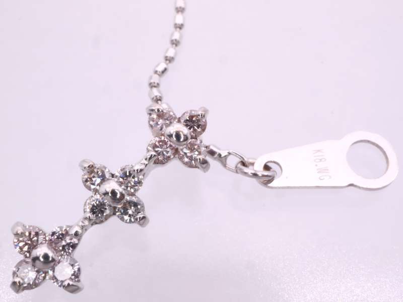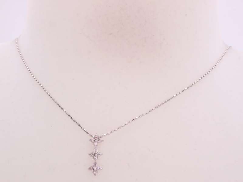 ダイヤ0.06ct フラワーモチーフペンダント ネックレス K18WG ホワイトゴールド