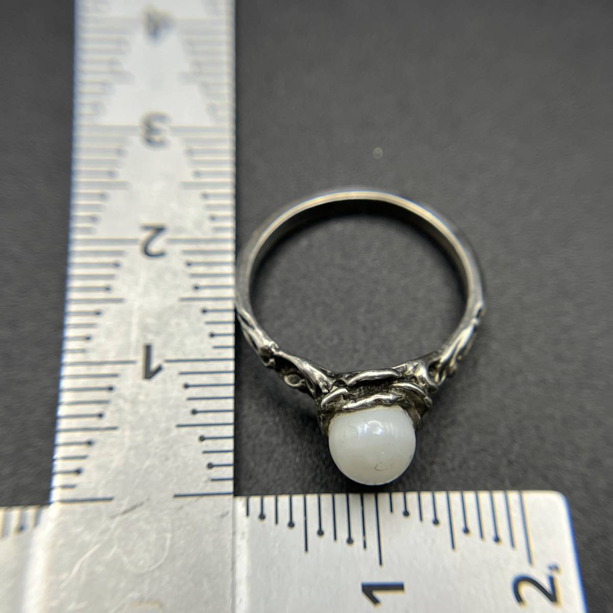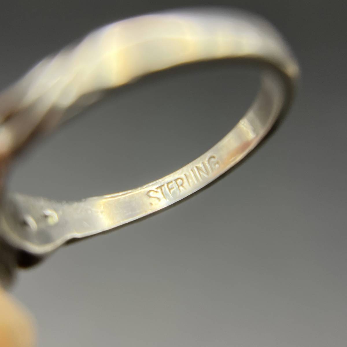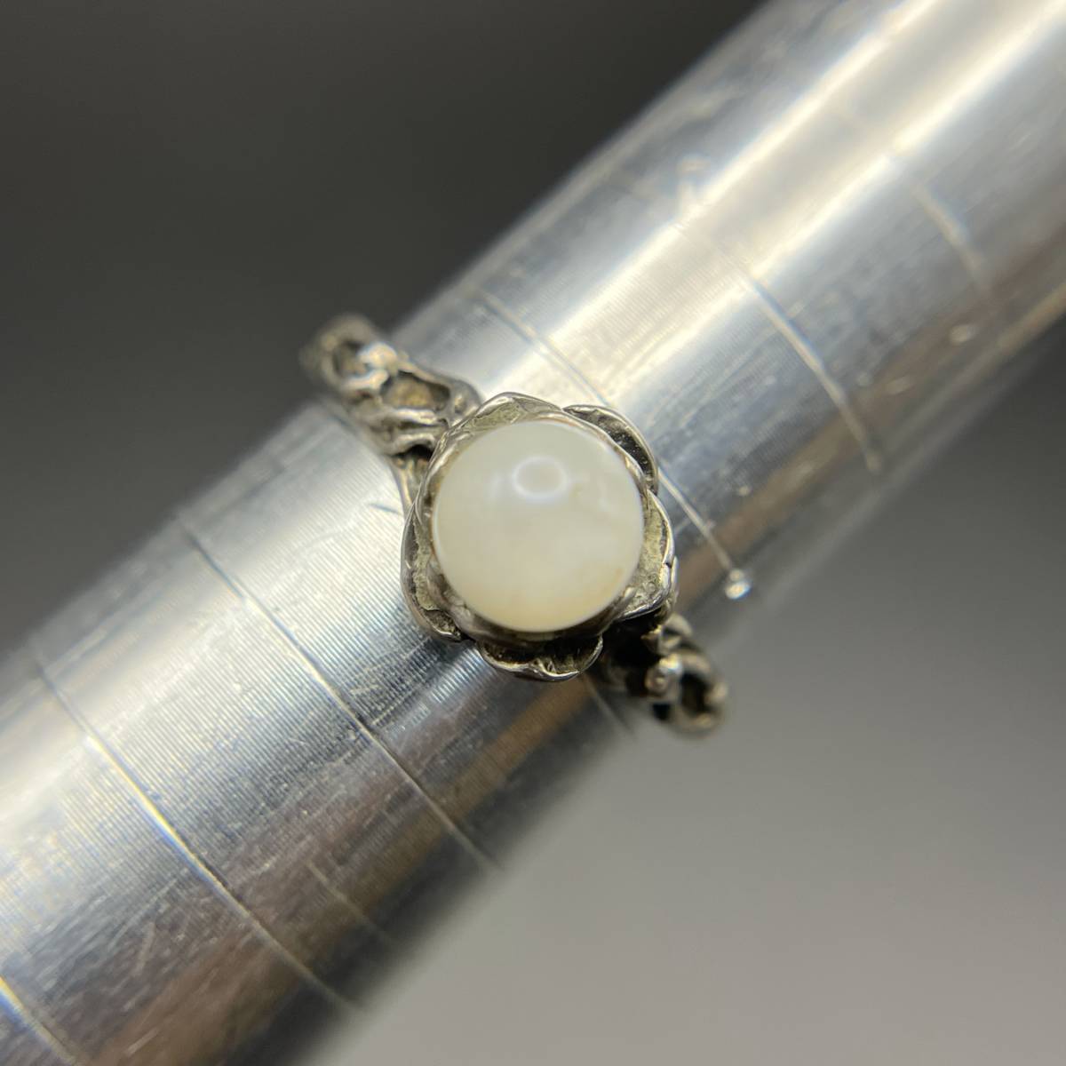 ホワイトストーン ラウンド 花 立体 925 シルバー 米国 ヴィンテージ リング 銀 USA フローラル 枝 3D 7Y-D②