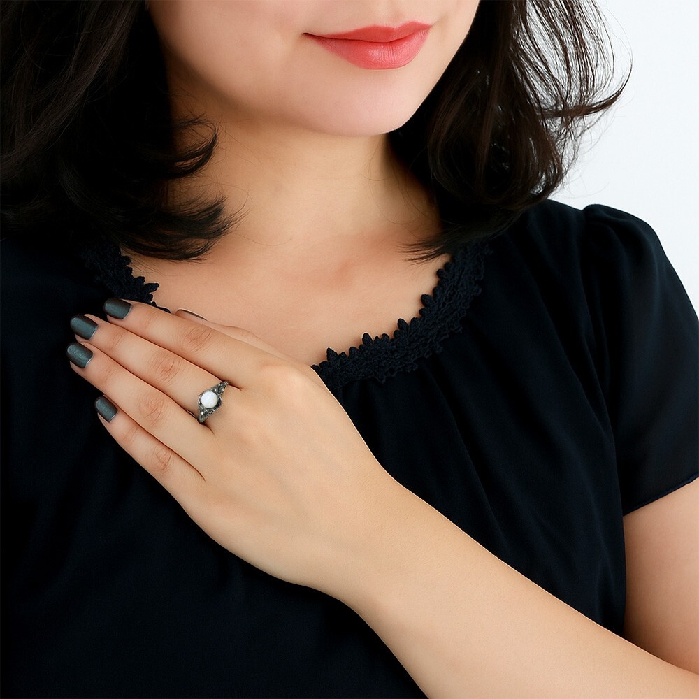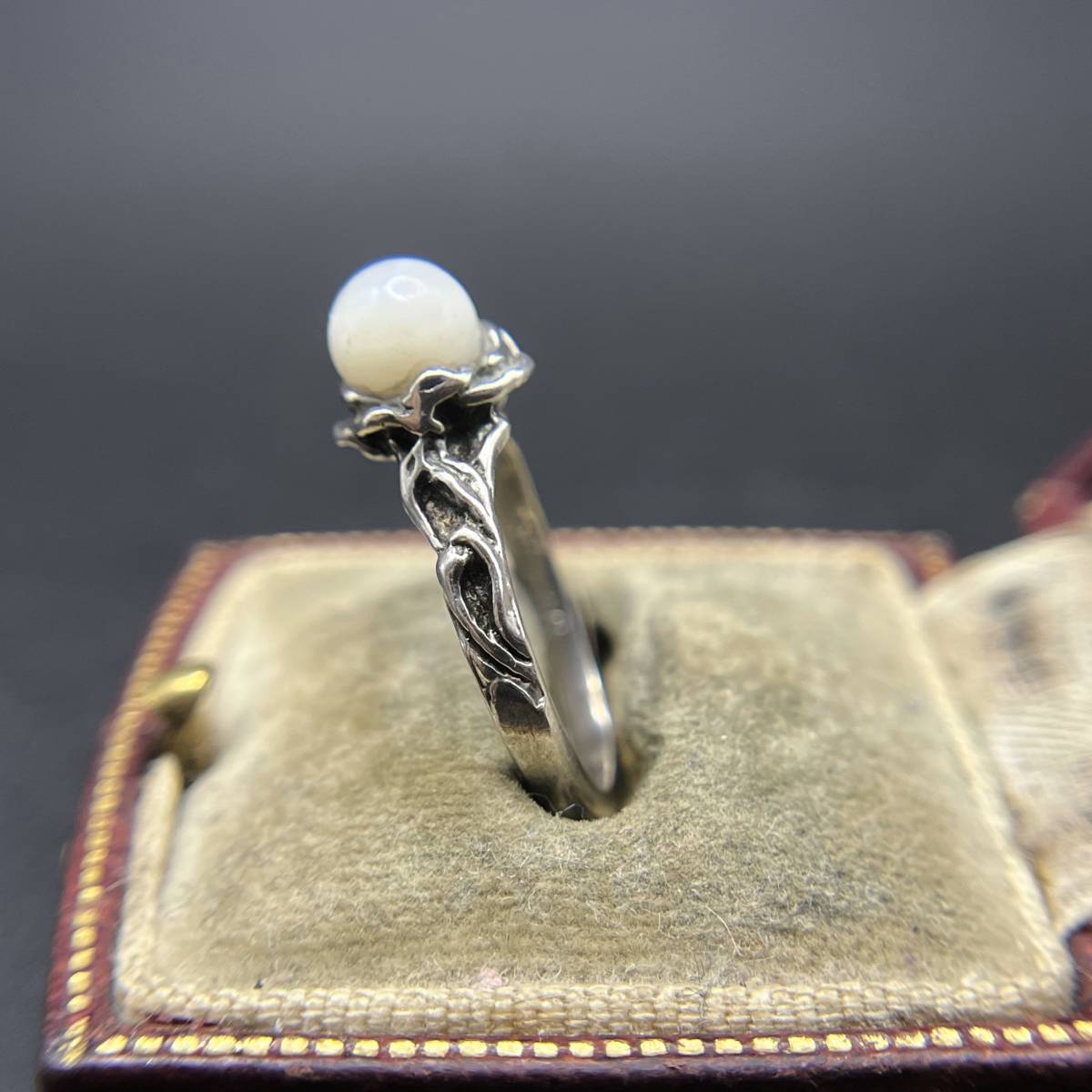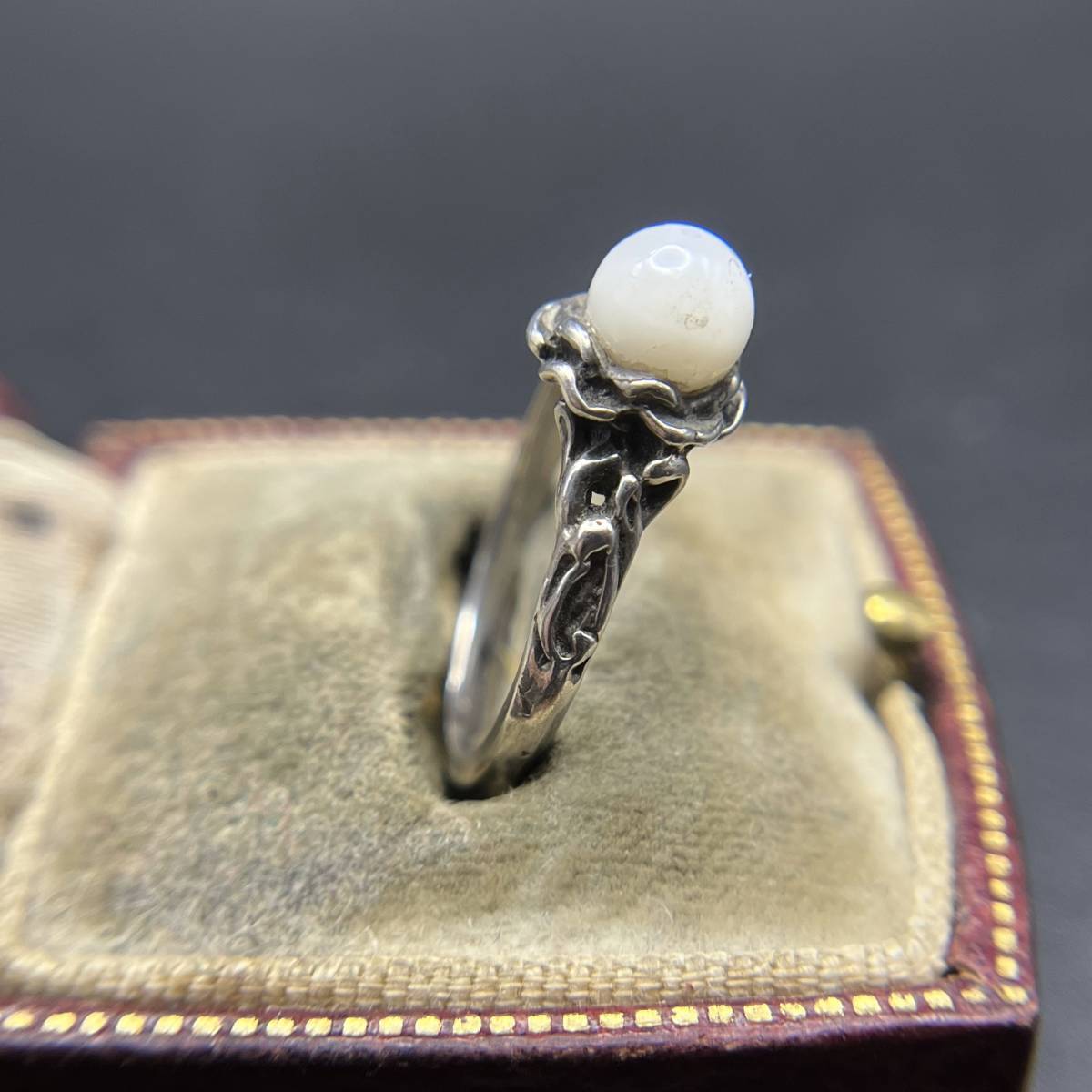 ホワイトストーン ラウンド 花 立体 925 シルバー 米国 ヴィンテージ リング 銀 USA フローラル 枝 3D 7Y-D②