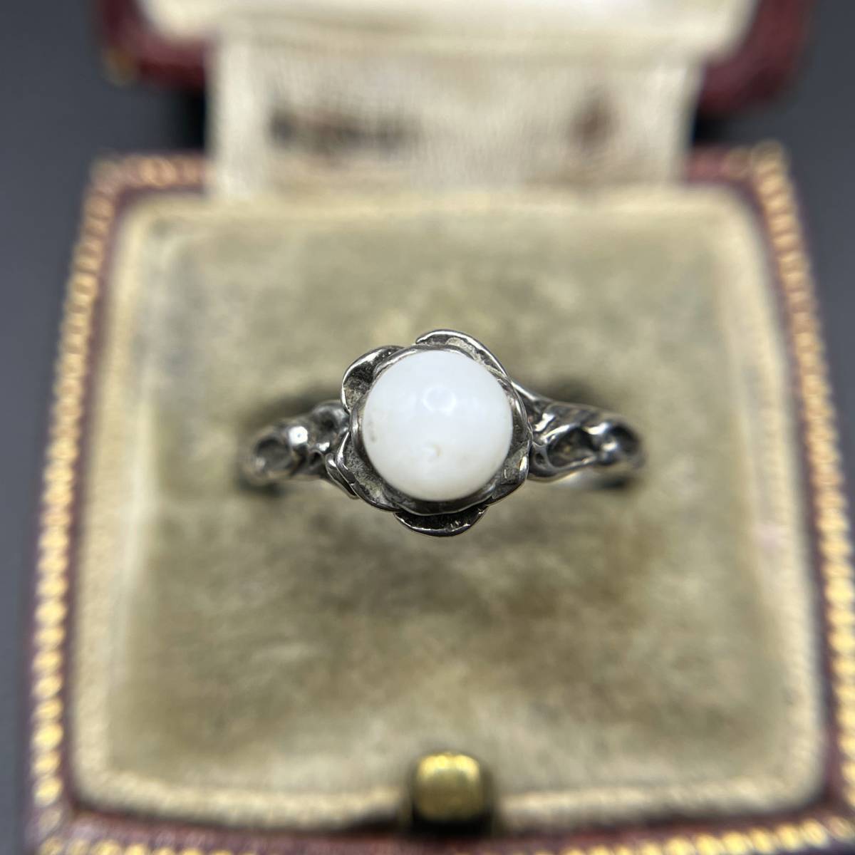 ホワイトストーン ラウンド 花 立体 925 シルバー 米国 ヴィンテージ リング 銀 USA フローラル 枝 3D 7Y-D②