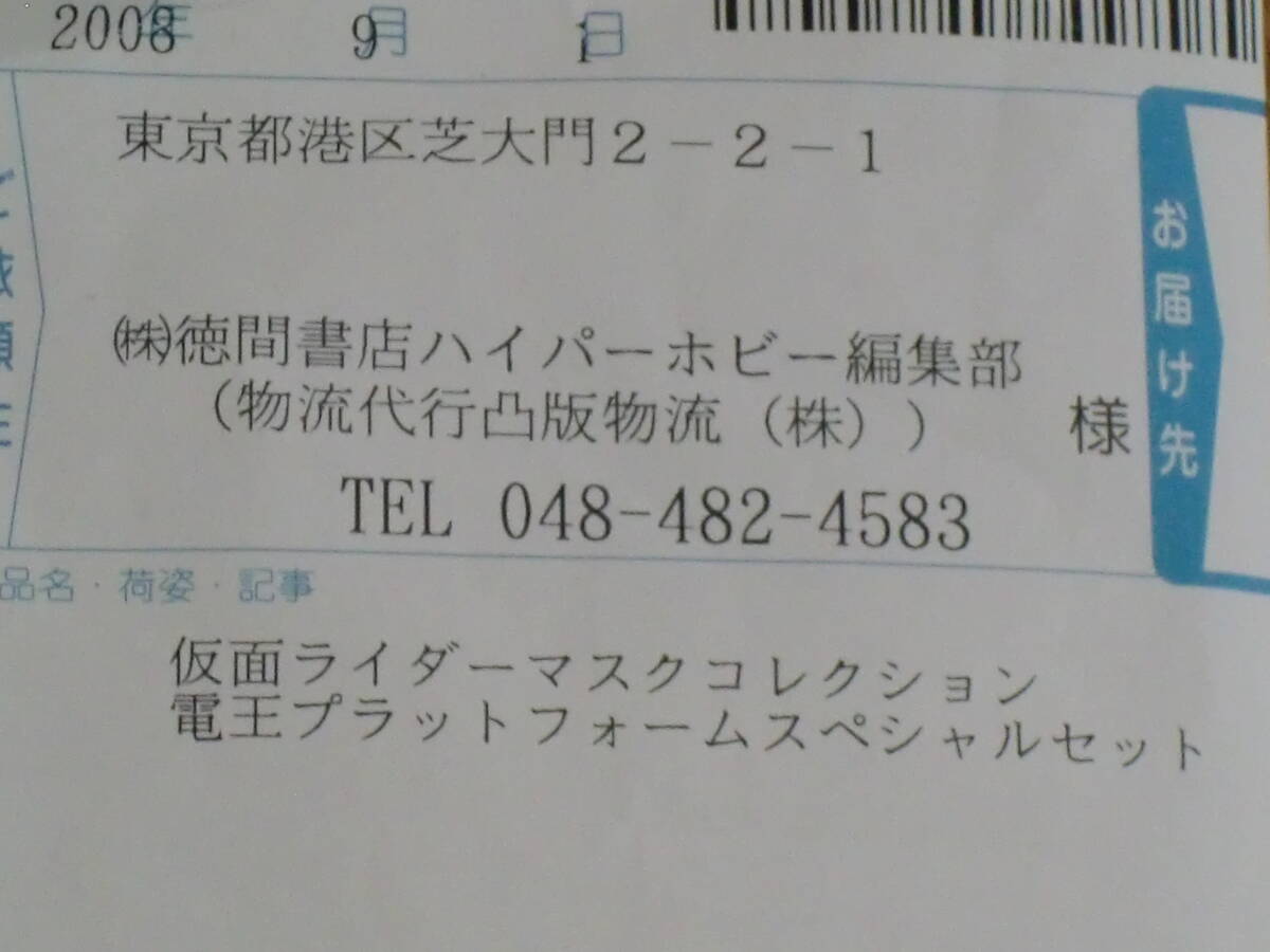 バンダイの マスクコレクション ハイパーホビー誌上限定「仮面ライダー電王プラットフォームスペシャルセット」 です。 コレクション整理の為、お譲りいたします。 輸送箱のみで、最初から化粧箱はありません。 又、送り状は、個人情報を切り取った、お写真に写っている部分のみ同封いたします。 袋未開封の未使用品ですが、お写真で現状をご理解いただける方のみ入札いただき、NC・NRでお願いいたします。 尚、迅速な対応を心がけてはおりますが、仕事の都合で、お支払い終了後、発送まで若干のお時間を頂戴する場合がありますのでご了承下さい。 又、深夜と平日の昼間は連絡が出来ない可能性がありますので、併せてご了承ください。 他にも「おもちゃホビー」を色々出品しておりますので、よろしければご覧下さい。
