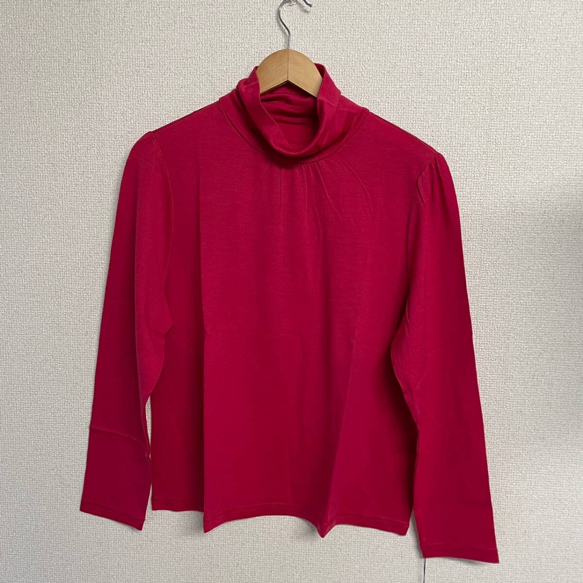 新品46 4L寸 大きいサイズ ウールファクトリー ウォッシャブル衿&肩 ギャザータートルネックプルオーバー Fピンク 530255