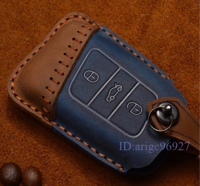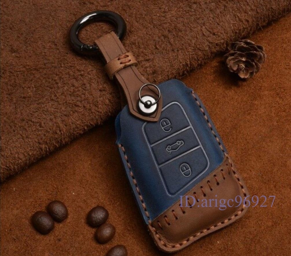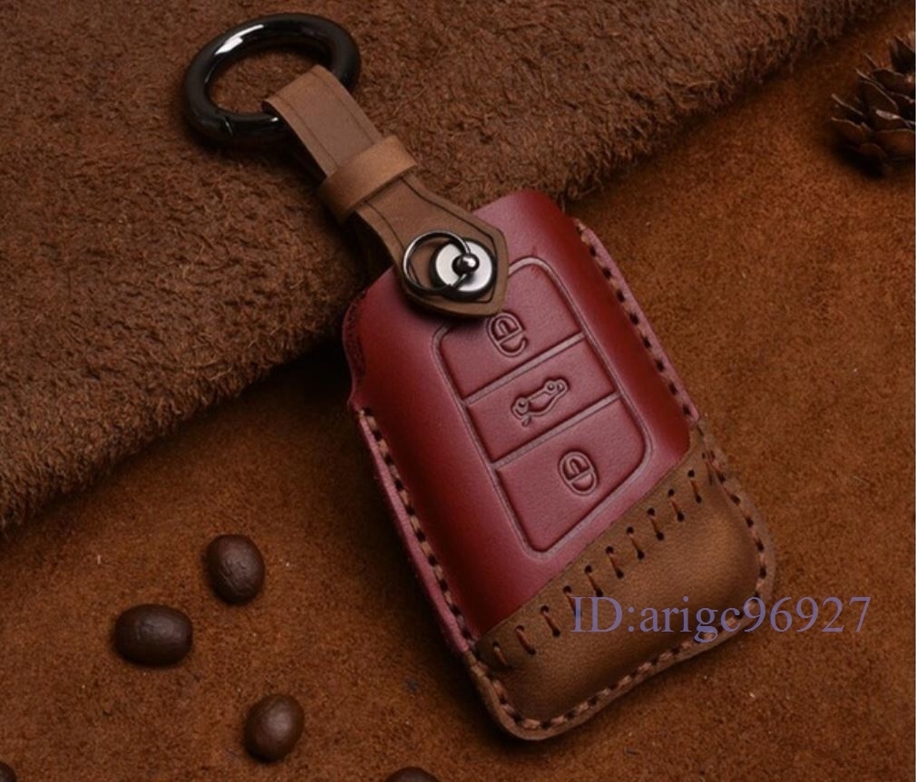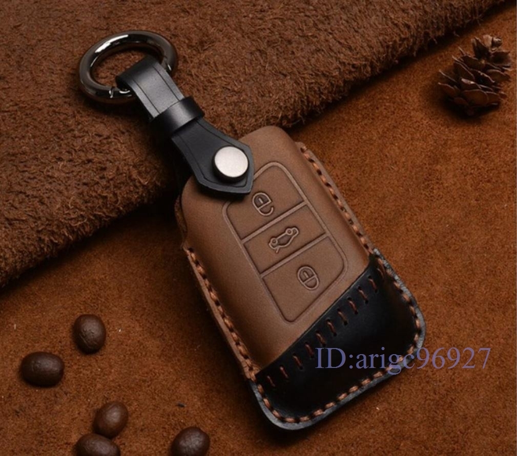 O917★新品キーカバーケース車本革レザーキーホルダーVW Passat B8 CC MagotanフォルクスワーゲンSKoda A7 Octavia Superb