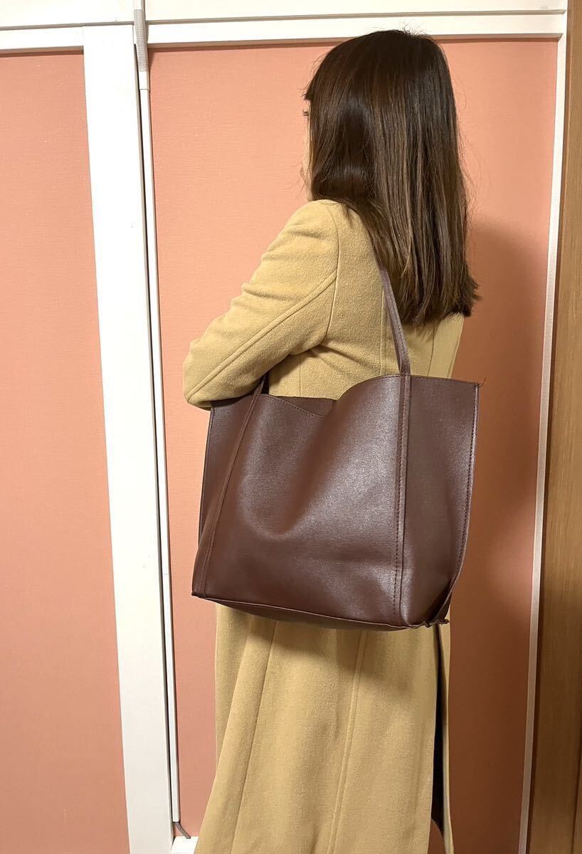 ショルダーバッグ ダークブラウン シンプル レディースバッグ ナチュラル おしゃれバッグ 通勤
