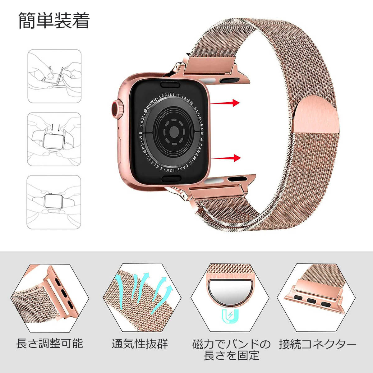 アップルウォッチ バンド AppleWatchband ステンレス series SE 9 42mm 44mm 45mm 49 ループ メッシュ マグネット ローズゴールド 送料無料