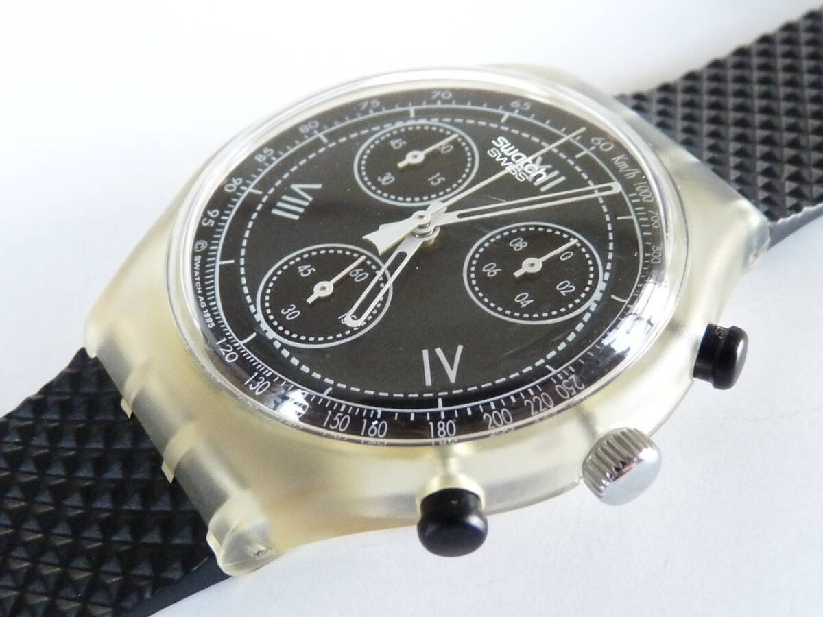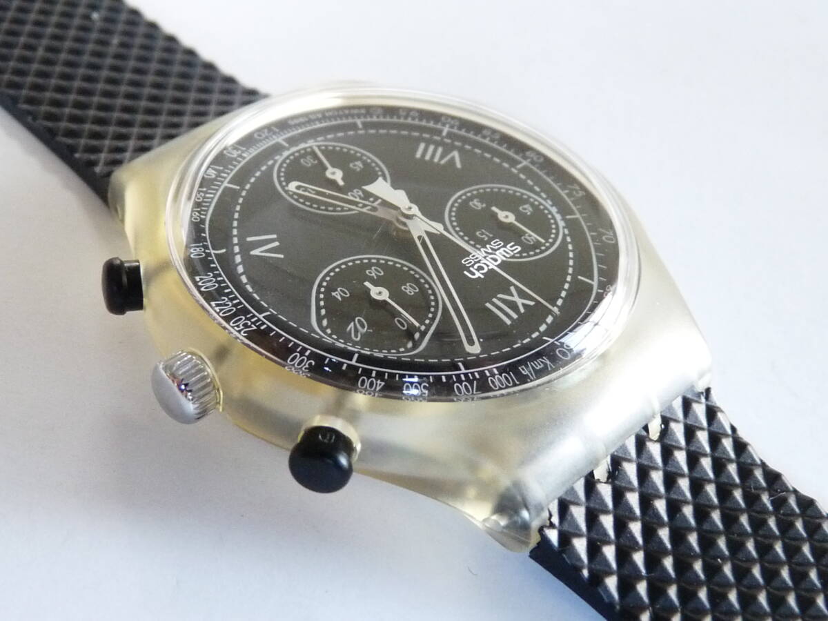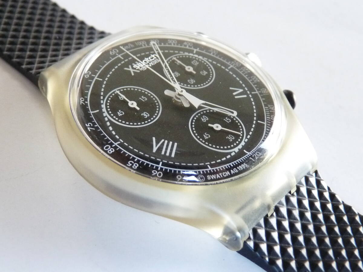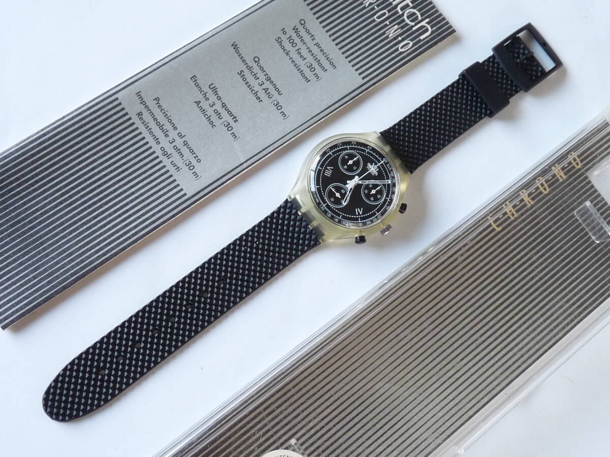 未使用電池交換済 稼働中 スウォッチ Swatch 1996年モデル クロノ See Through 品番SCK110 新品ベルトに取替済