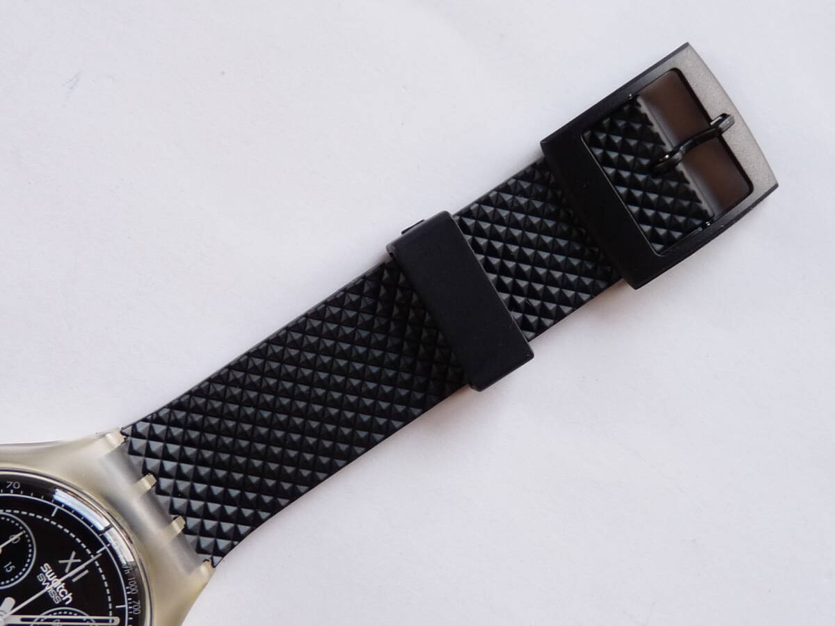 交換したベルトは社外品でありますがSwatch専用ベルトでとてもしなやかに曲がりますので、特に問題無いかと思います。