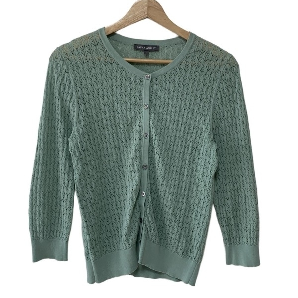 ローラアシュレイ LAURAASHLEY カーディガン サイズM - コットン、コットン ライトグリーン レディース 七分袖 トップス