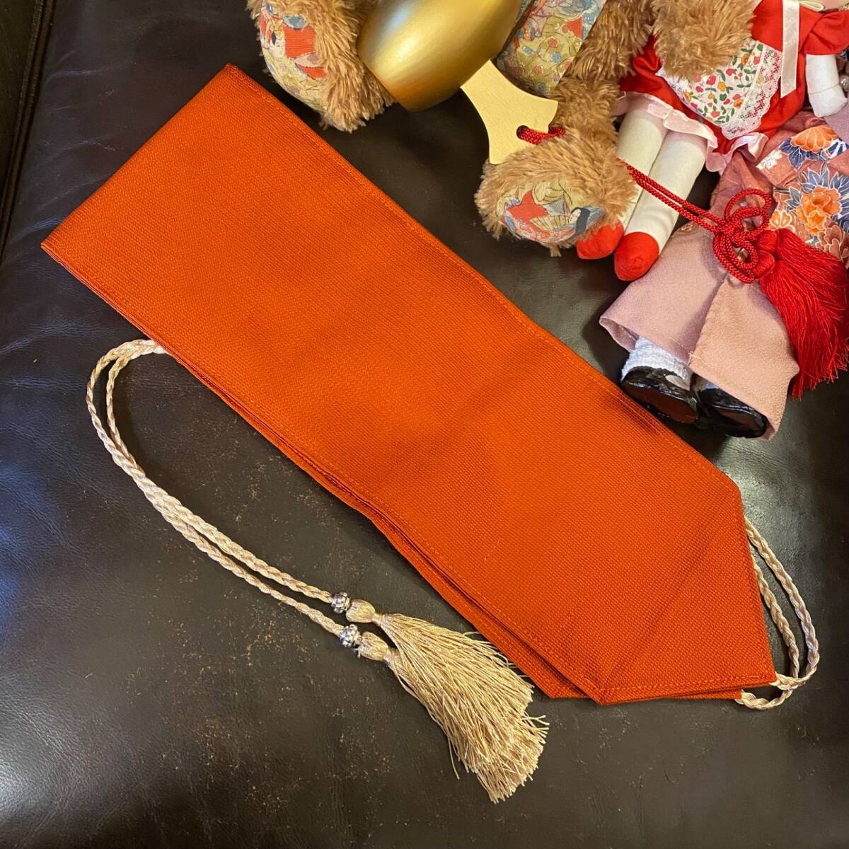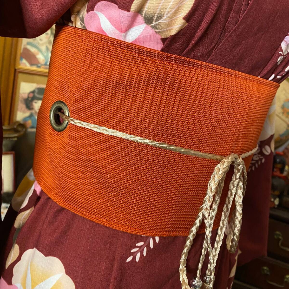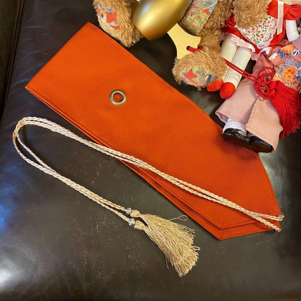そこに合わせたのは、朱赤の帯風ベルトと、