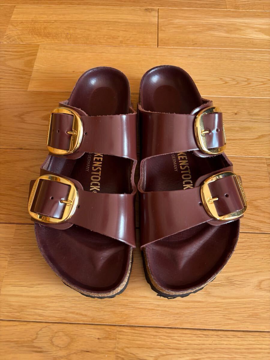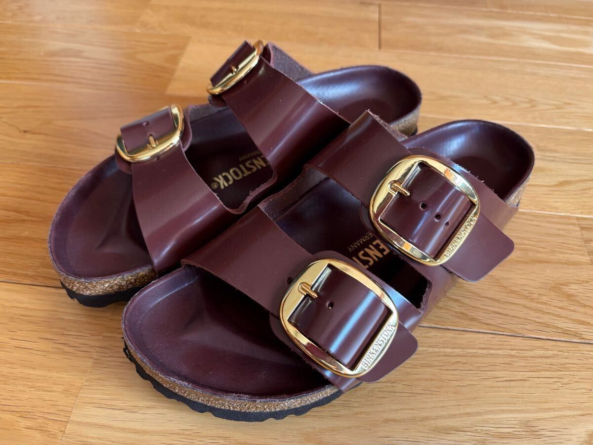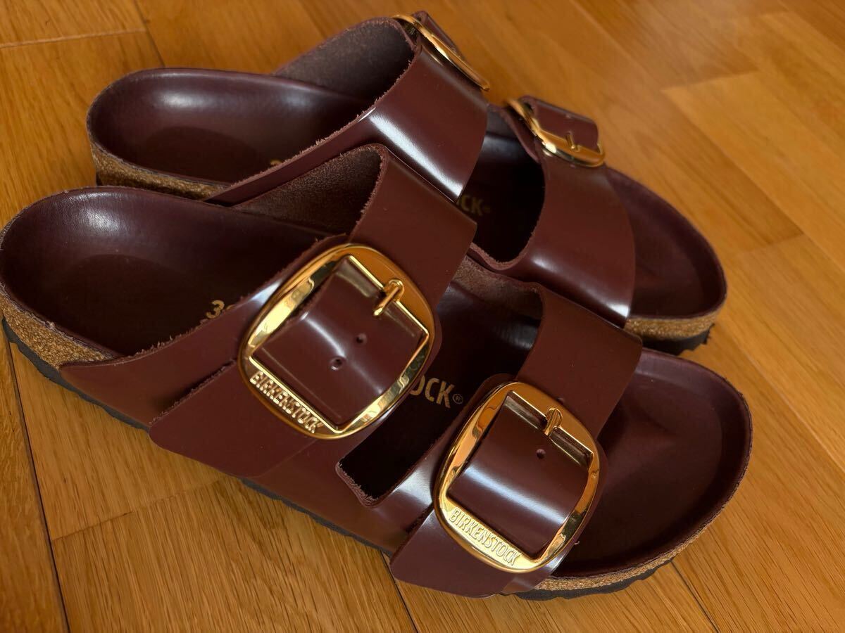 色は茶のパテントレザーにゴールドのビッグバックルでとっても素敵です。