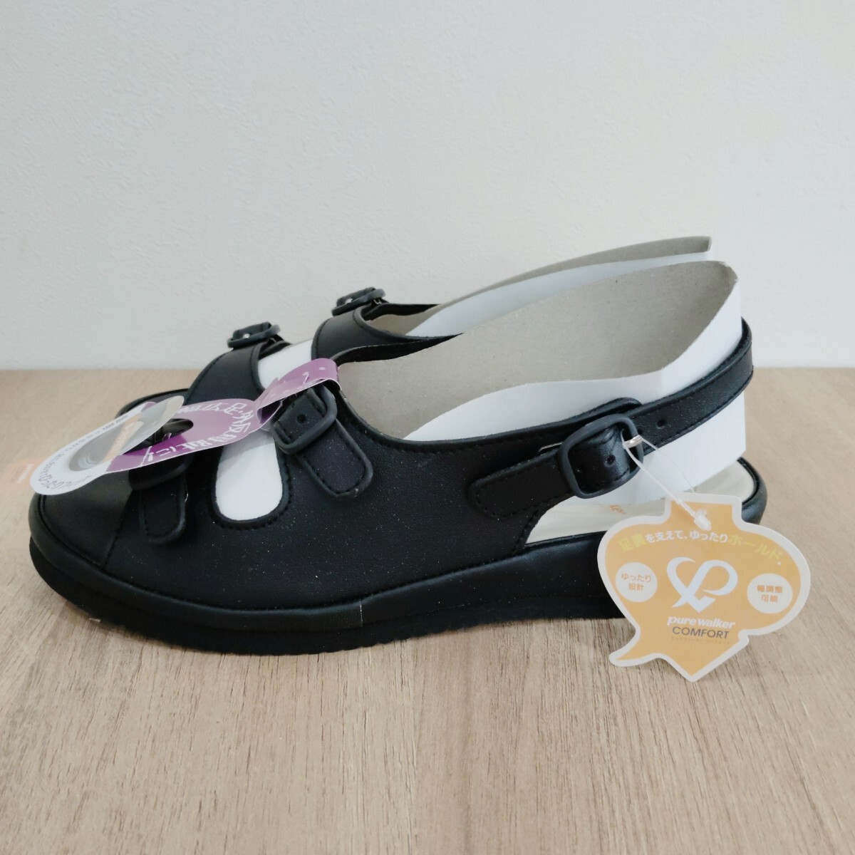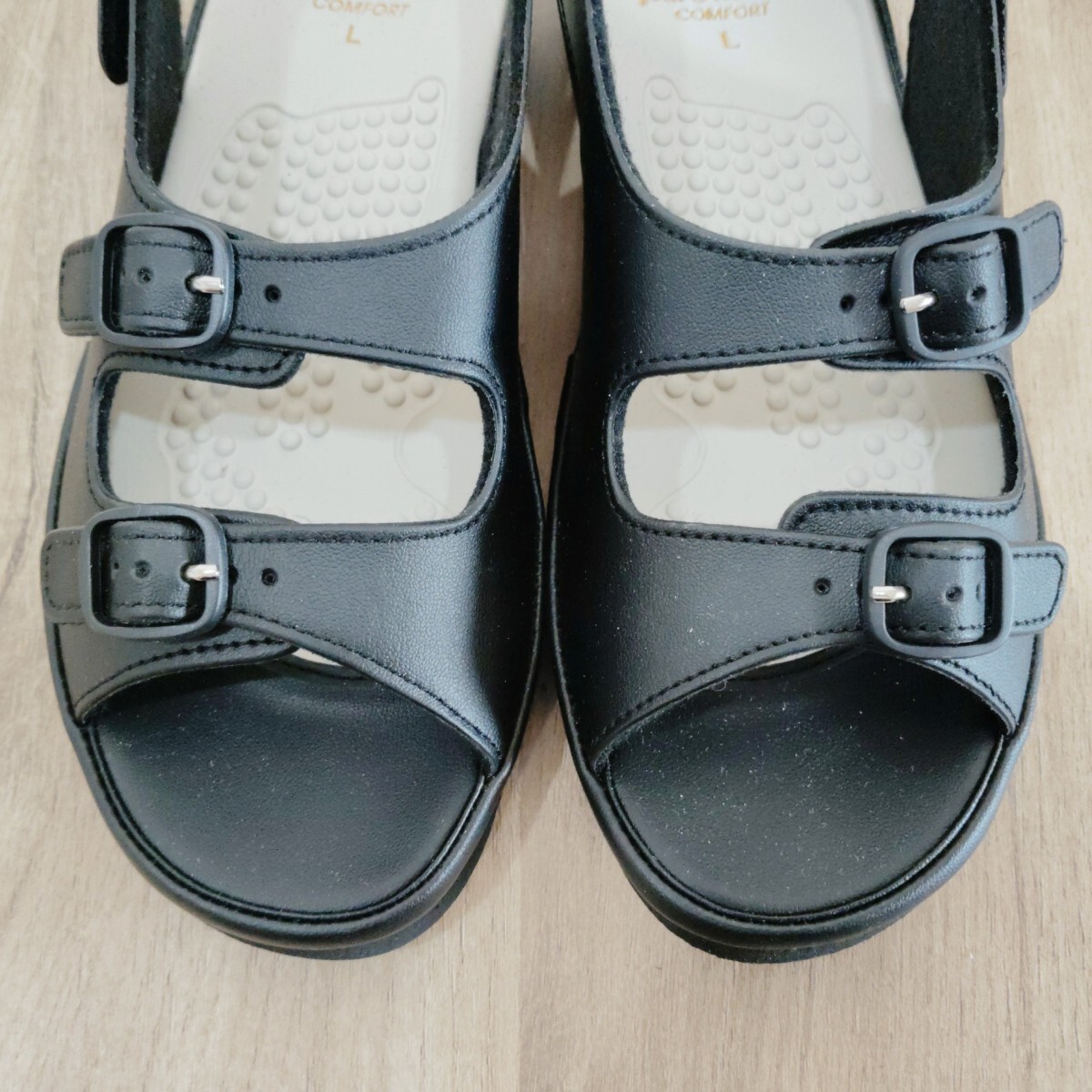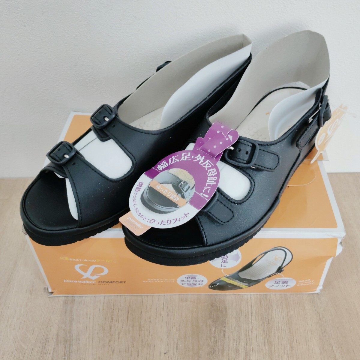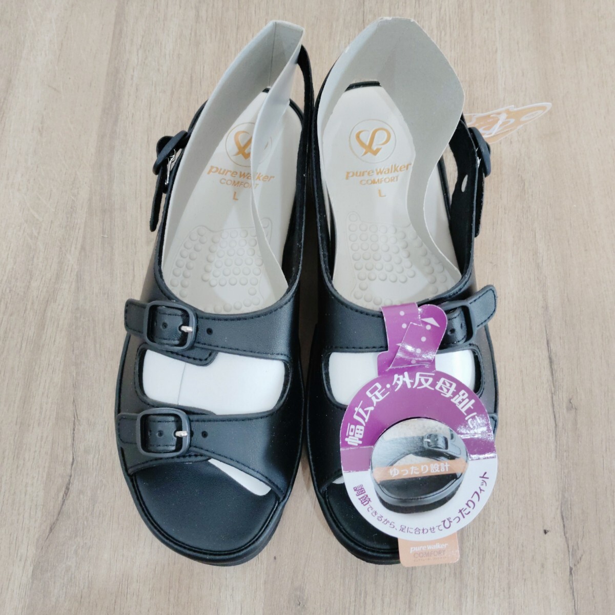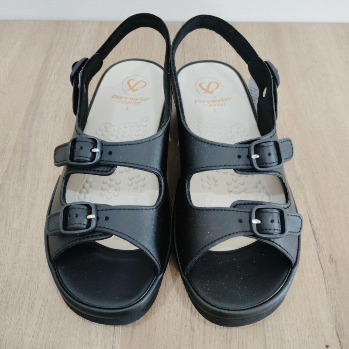 purewalker COMFORT ピュアウォーカーコンフォート サンダル Lサイズ 24cm レディース ブラック ゆったり設計 幅調整可能