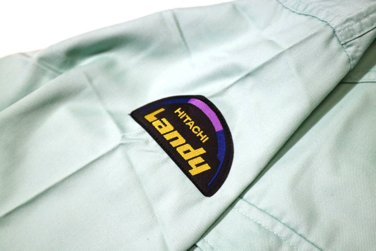 ・やや薄手ながらも着やすくしっかりとしたツイル状の65/35ポリ綿地、AUTO-BI製の安心感のある作りです。日立建機のLandyのつなぎです。