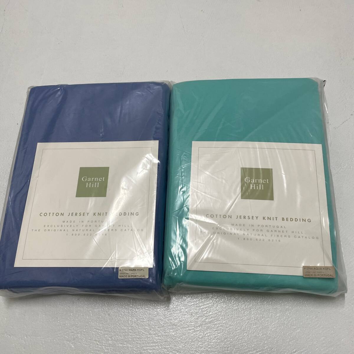 ポルトガル製、Garnet Hillのフラットベッドシーツ2枚セットになります。 袋から出していない状態で保管していました。(サイズは当方が使用している同ブランドの物で計測しました。) やや伸縮性のあるコットンジャージ素材です。 サイズ的には日本規格のクイーンサイズに相当するかと思います。 お探しの方におすすめです。 | |||