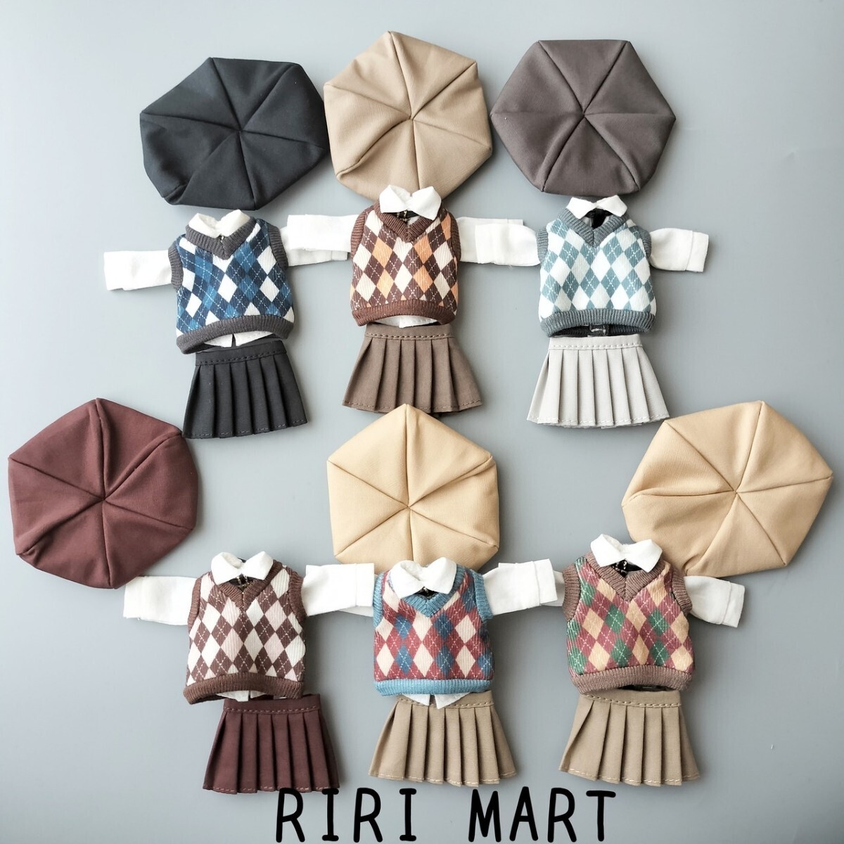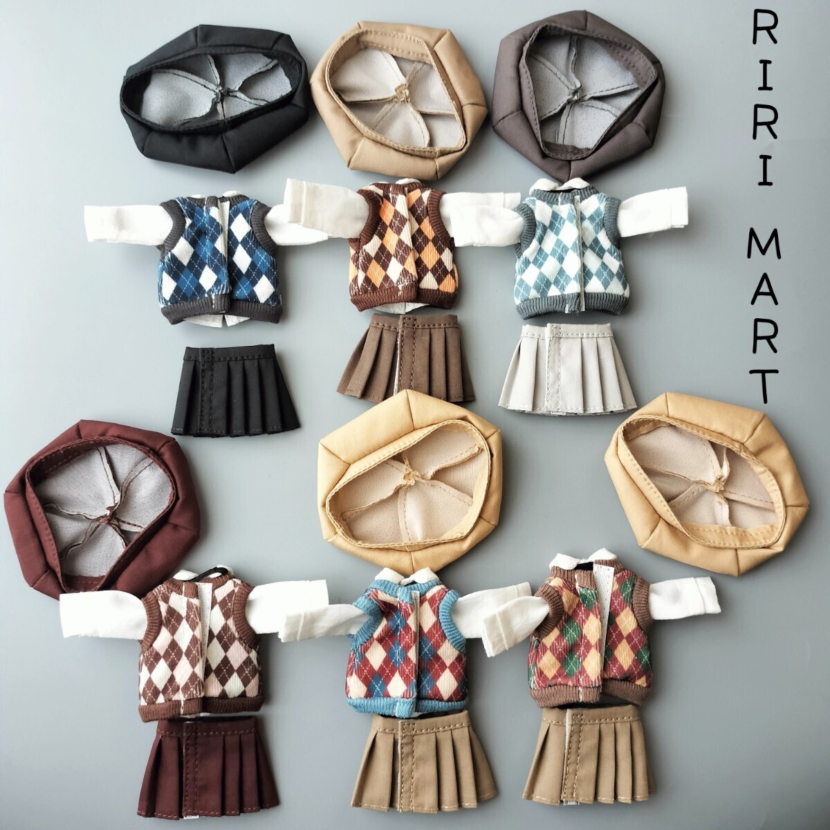 オビツ11 ベレー帽+Yシャツ+ネクタイ+ニットベスト+スカート ねんどろいどどーる