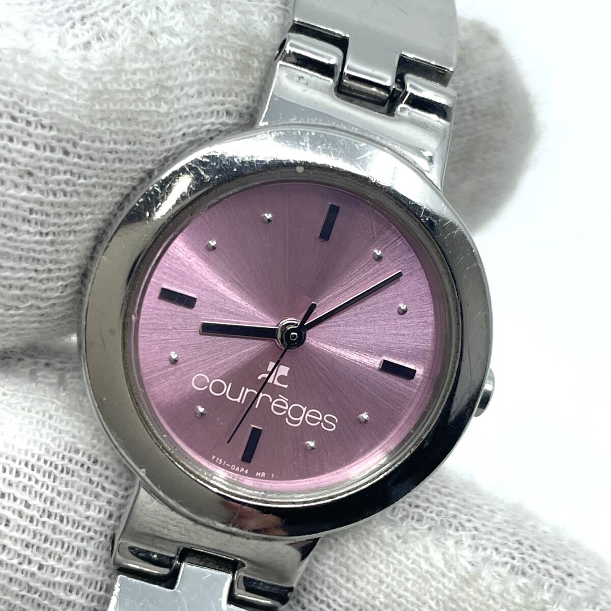 【電池切れ】Courreges クレージュ クォーツ 腕時計 ピンク文字盤 3針 ラウンド ケースシルバー 金属 ブレスウォッチ Y151-0AG0