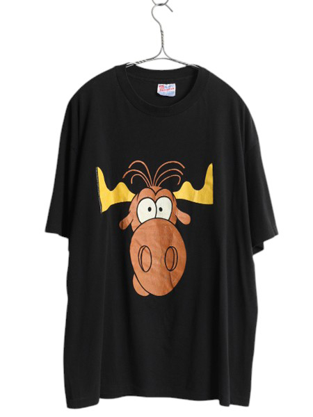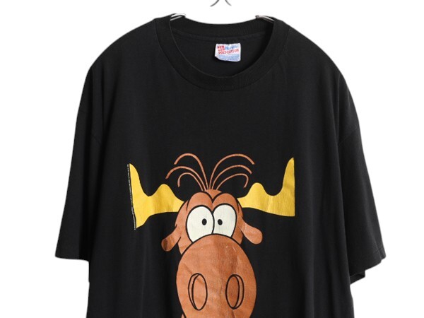 | 商品名 | 90s タコベル × ロッキー&ブルウィンクル 両面 プリント Tシャツ メンズ XL / オールド キャラクター イラスト アニメ シングルステッチ 黒 |