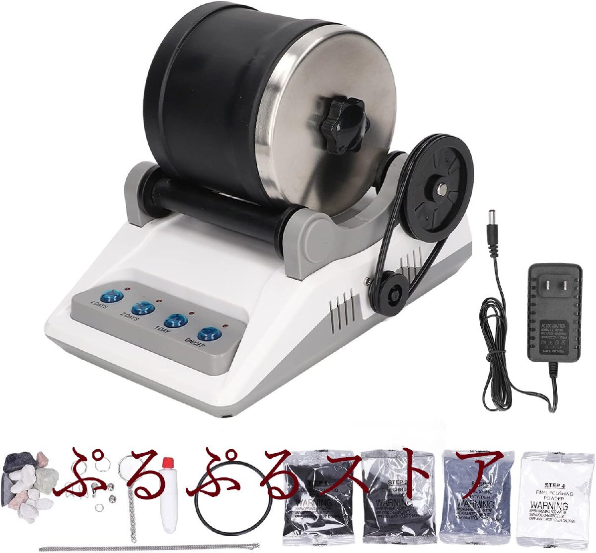 パッケージリスト: 1×ホスト 1×ローラー 1 x ストーンバッグ (スタイルと色はランダム) (ローラーの内側)。 1×電源アダプタ 4×サンディンググリット 1×接着剤 1×ホイールベルト 1 x アクセサリーバッグ (大きなキーリング 1 つ、小さなキーリング 1 つ、ネックレス 1 つ、リングサークル 2 つ、ストーンバックル 3 つ、ピン 2 つ) 1×ユーザーマニュアル