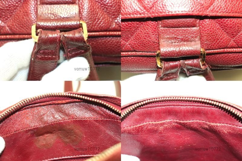 中古ですので新品と比較してすれ、小傷、色むら、若干の型崩れ、使用に問題ないレベルの糸ほつれ、金具にくすみ等ございますが写真の通りコンディション良好です。