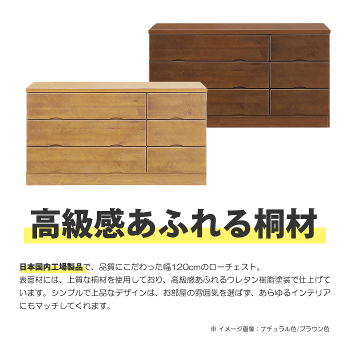 特  徴日本国内工場製品で、品質にこだわった幅120cmのローチェスト。