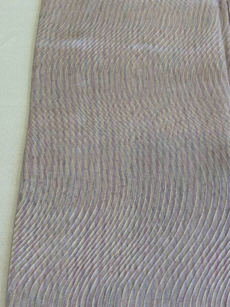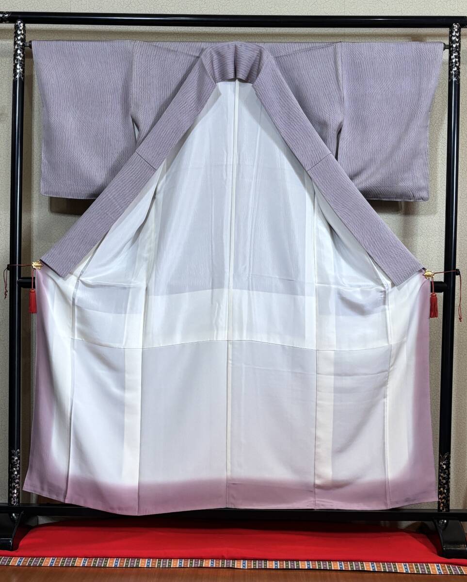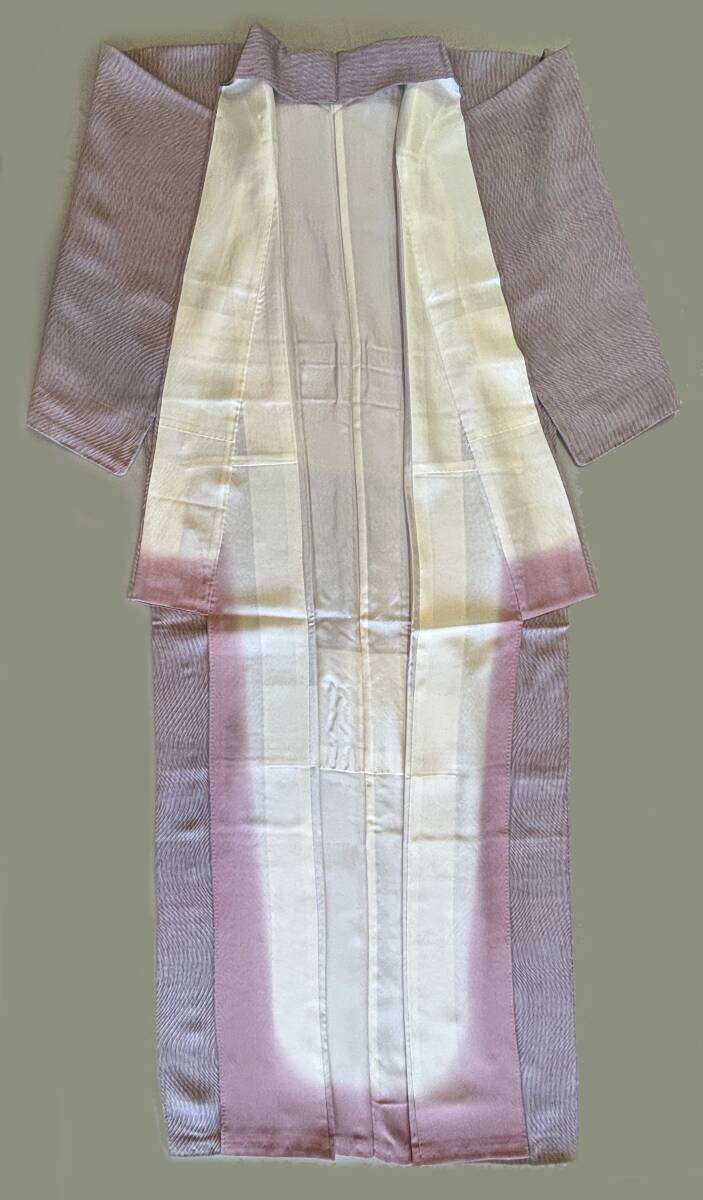 枯山水地紋の紋意匠生地を使い、その流れに合わせて無地に近いぼかし染めをした着物です。