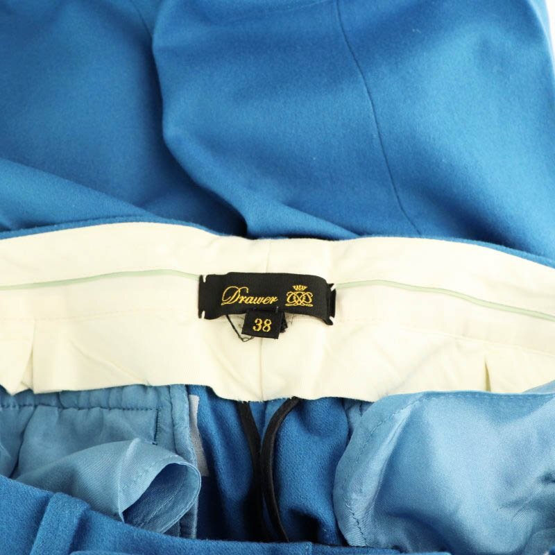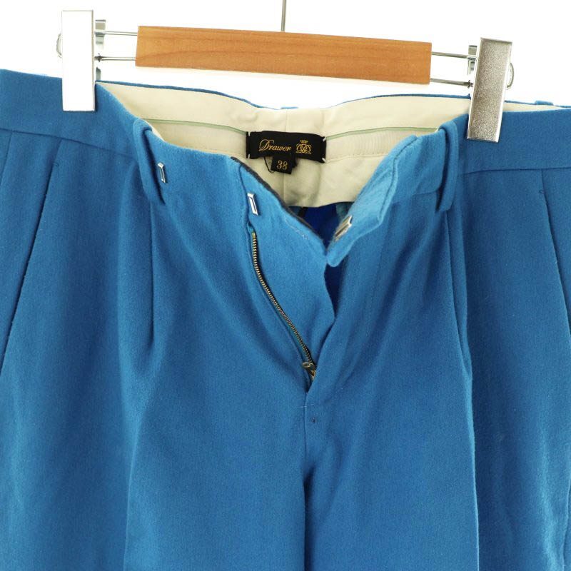 ドゥロワー Drawer タックパンツ テーパード ジッパーフライ ウール 38 青 /NR ■OS レディース