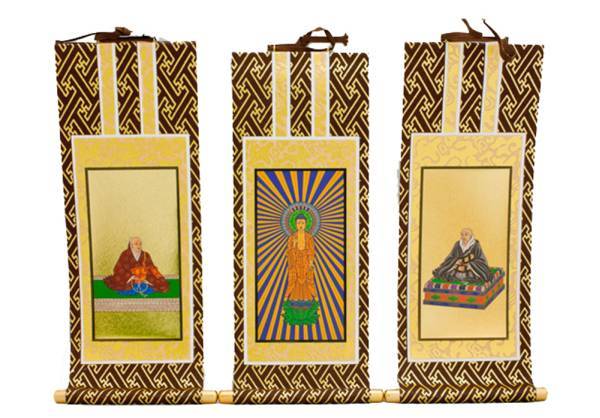 浄土真宗用(西)本願寺派 掛軸1式 豆170×90mm 茶金 西立弥陀 親鸞 蓮如
